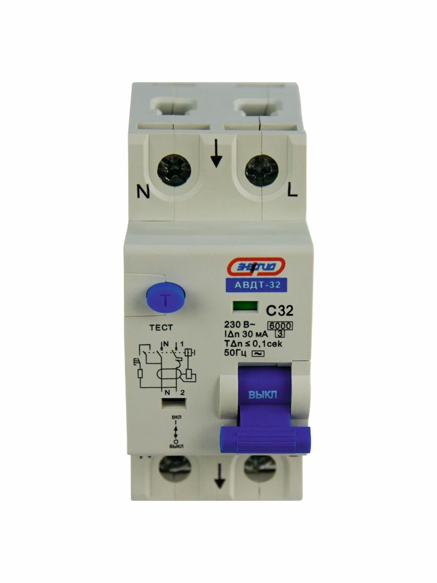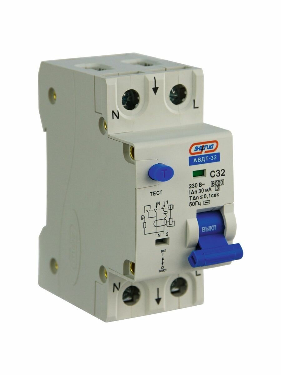 Автоматический выключатель дифференциального тока с номиналом 32 ампера. Имеет двухмодульную конструкцию (занимает два места на DIN-рейке). Сочетает в себе функции автоматического выключателя и УЗО. Работает даже при очень низких напряжениях (вплоть до 50 В), имеет высокую механическую износостойкость.