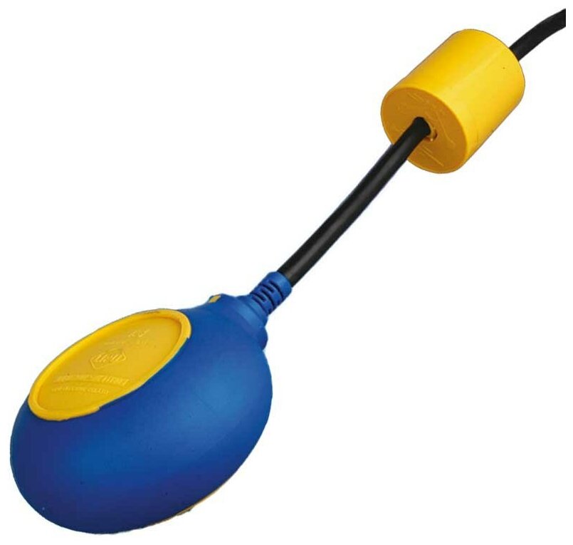 Поплавковый выключатель для электронасосов (датчик уровня) имеет двух- и трехметровый кабель, «лягушку» и грузило, помещаемое в воду. После небольшой доработки данные поплавковые выключатели можно применять не только для подключения к электрическим насосам, но и, например, к бензиновым и дизельным помпам. Поплавковый выключатель применяется как для отключения электрических насосов при уменьшении уровня воды до контролируемого значения, так и для отключения/включения электронасосов при изменении контролируемого уровня воды. Если вы, например, наполняете резервуар водой, то, опустив грузило в резервуар вы можете отрегулировать по длине «лягушки» выключателя и когда вода поднимет ее на заданную высоту, то внутри «лягушки» специальный шарик разомкнет контакты, тем самым выключив насос от электросети.