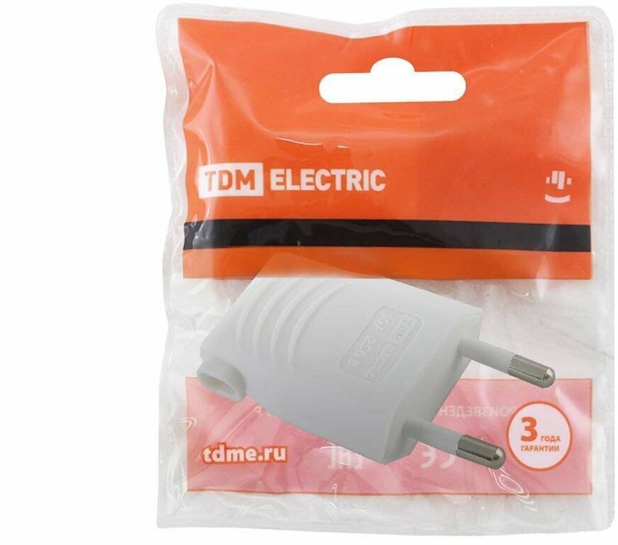 Сервис сравнения цен СкидкаГИД предлагает сравнить цены на товар «Вилка TDM б/з белая 10А 250В (евровилка CEE 7/16) угловой вывод проводника TDM Electric (SQ1806-0090)»