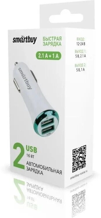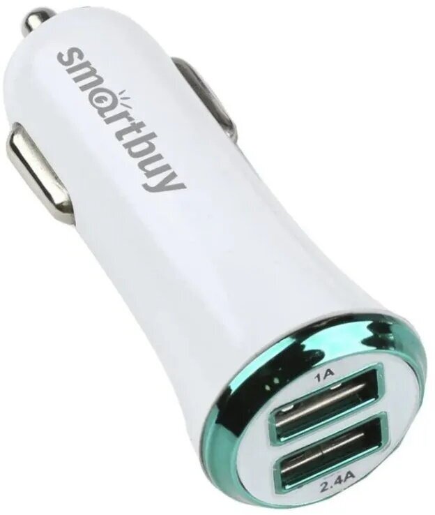Автомобильное зарядное устройство SmartBuy TURBO, белое 2 USB SBP-2021 предназначено для питания современной электроники с разъемом USB от автомобильного прикуривателя. Модель оснащена 2-мя USB-портами и имеет защиту от короткого замыкания, превышения токовой нагрузки и перенапряжения.