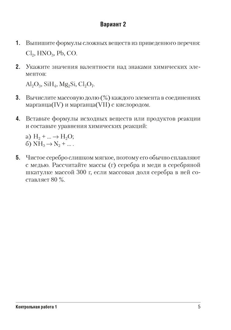Сборник содержит контрольные и самостоятельные работы по химии для 7 класса, представленные в четырех вариантах. Все варианты включают разноуровневые задания, которые разработаны согласно нормам оценки результатов учебной деятельности учащихся.