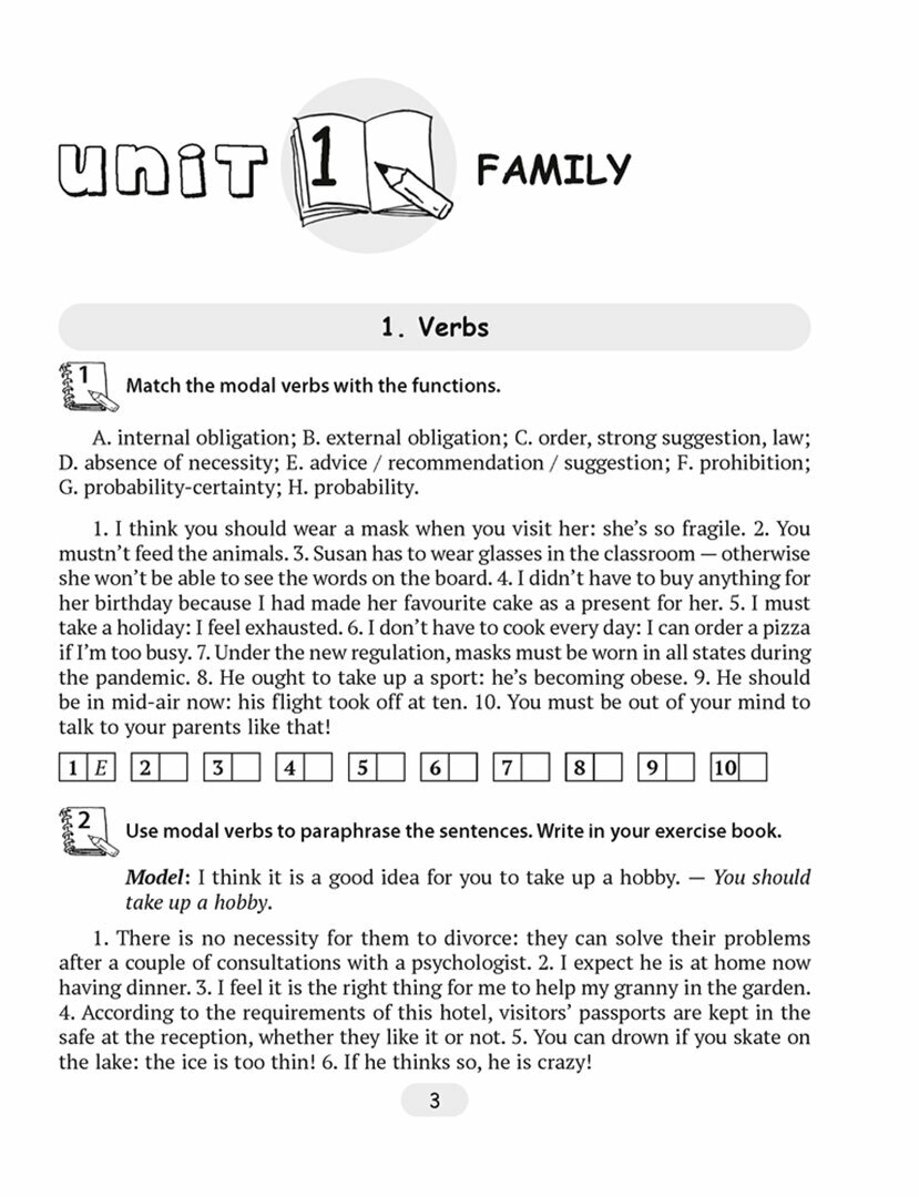 Тетрадь дополняет учебное пособие и соответствует программе. Представленные задания помогут одиннадцатиклассникам усвоить основные грамматические структуры, которые они смогут правильно употреблять в речи.