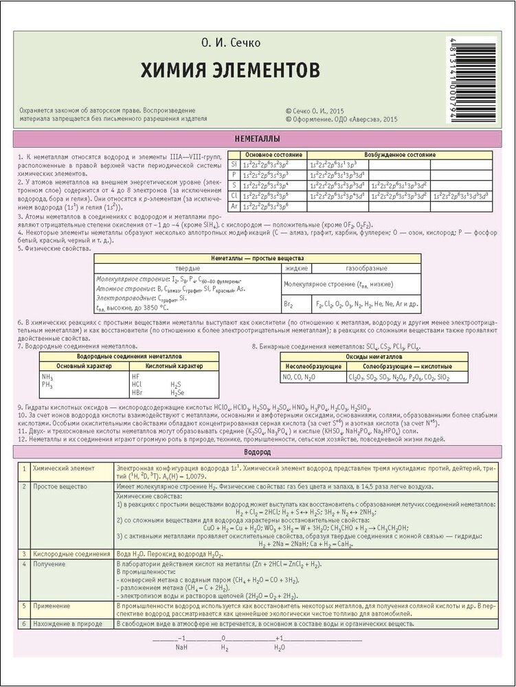 Химия. Химия элементов. Буклет (Сечко Ольга Ивановна); Аверсэв, 2022