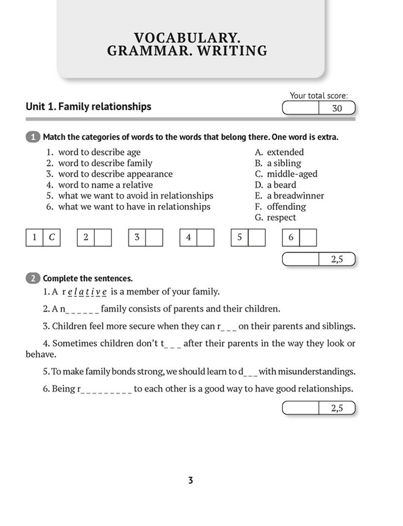 Тетрадь дополняет учебное пособие по английскому языку для 9 класса и соответствует программе. Издание содержит тесты, определяющие уровень развития языковых умений учащихся (восприятия и понимания речи на слух, чтения и письма), а также задания на проверку уровня сформированности лексико-грамматических навыков.