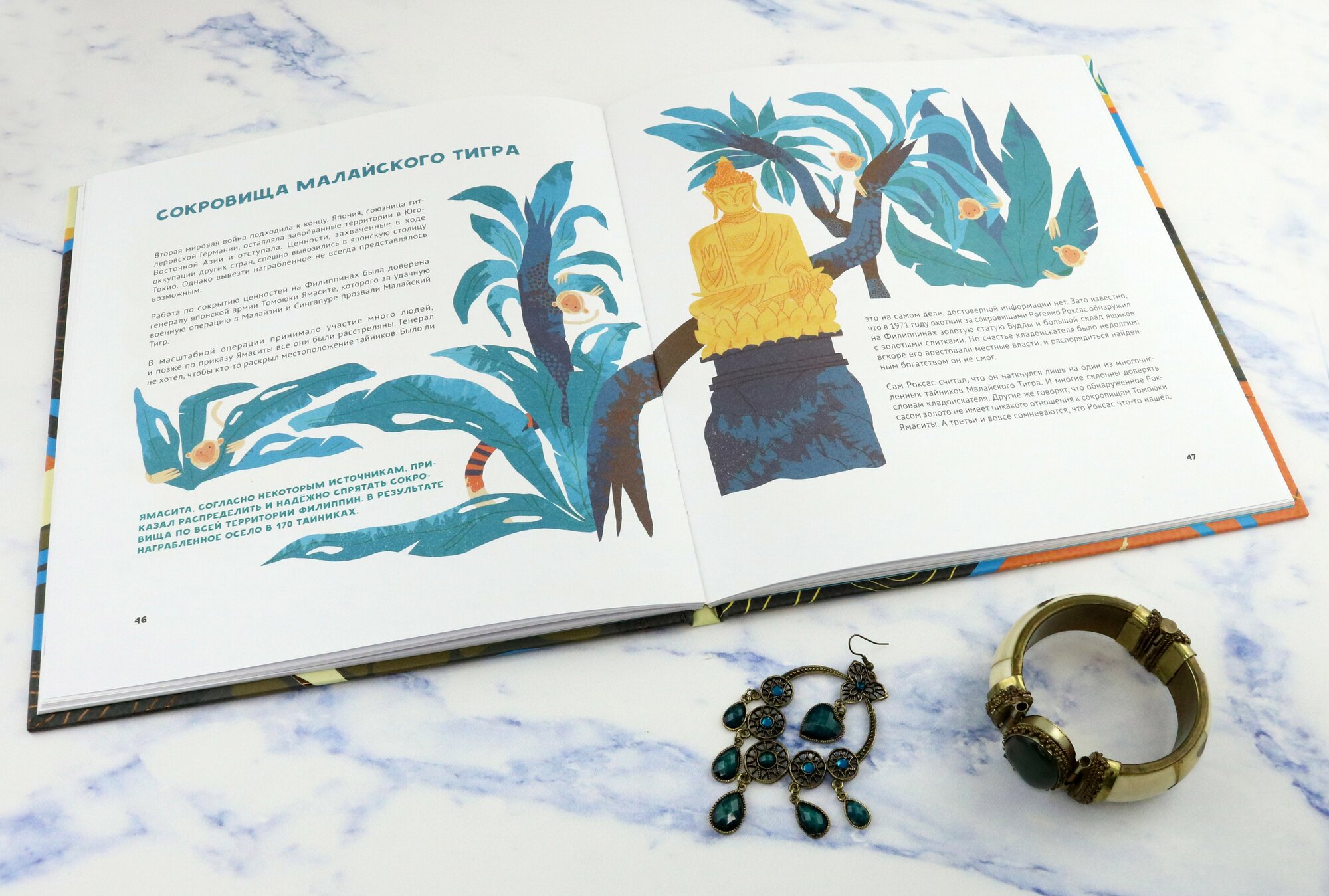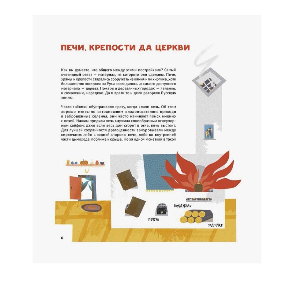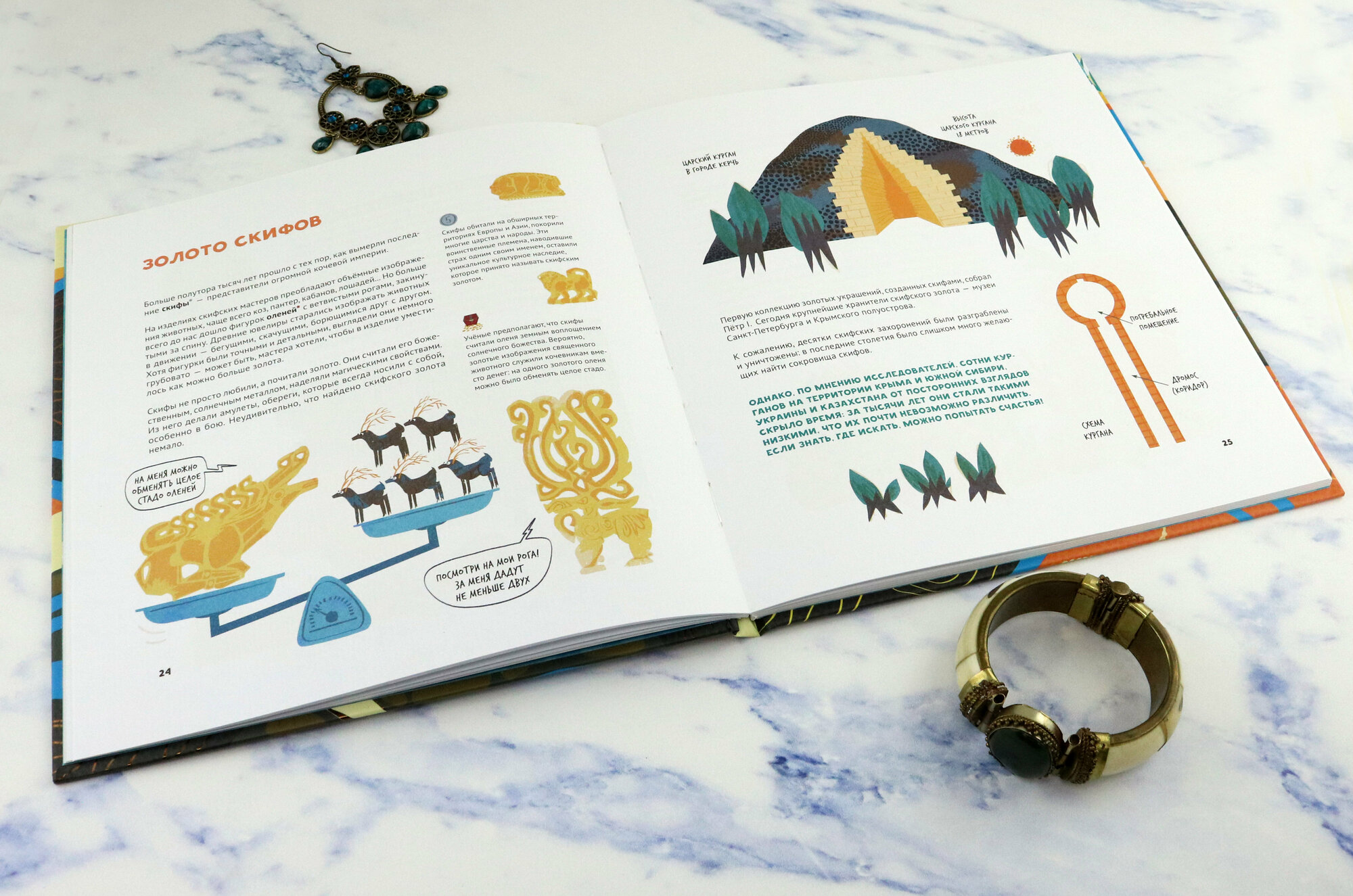 Классный выбор темы для книги! Поэтому мимо мы пройти не смогли. В глаза бросается красивая обложка, картинки внутри тоже хороши. И содержание отличное – кое о чем я знала, но очень многое оказалось новой информацией. Я читала вместе с сыном. Великолепная познавательная литература. Но с побочным эффектом – сын мгновенно захотел купить металлоискатель и пойти искать клад :) И очень заинтересовался различными раскопками