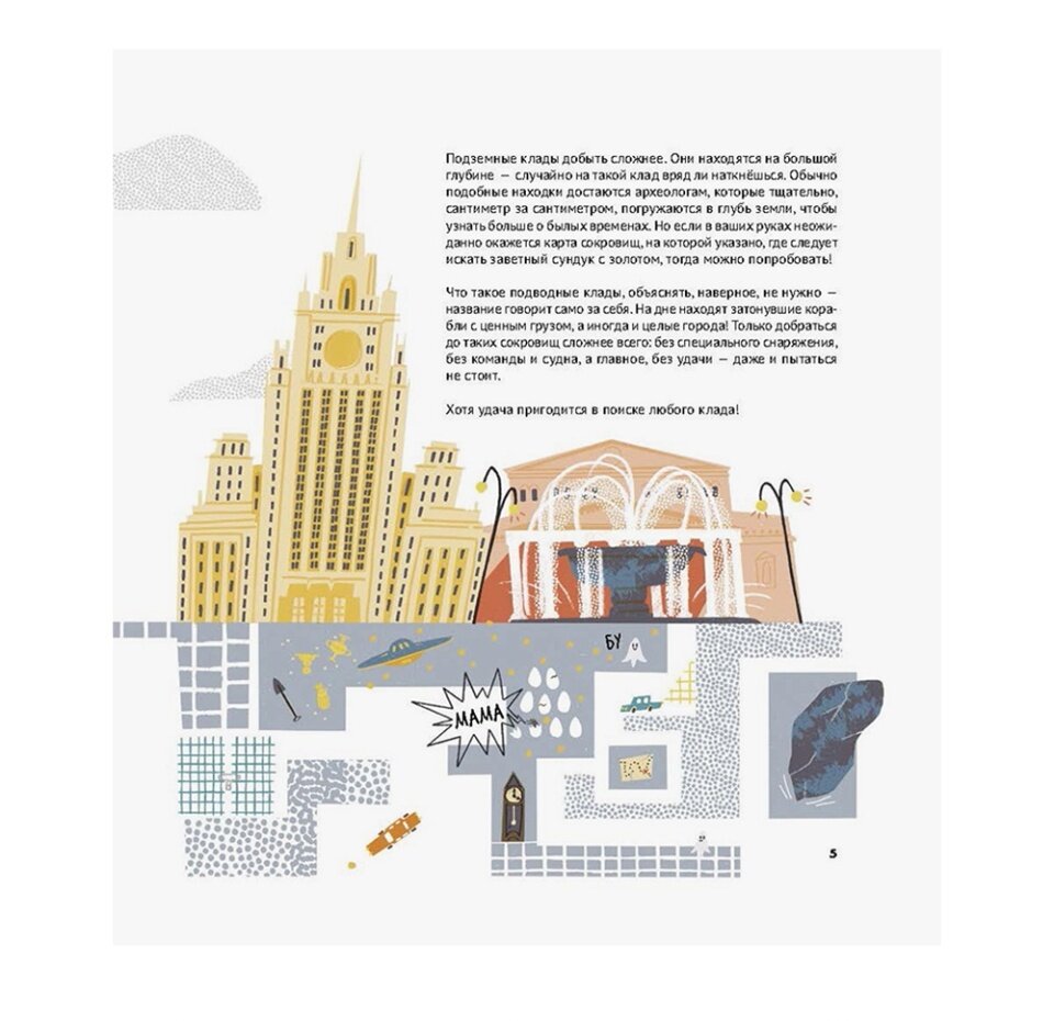 Книга детская, но оказалась интересна и взрослому. Легкий язык, но при этом есть и термины, и исторические факты. Клады на любой вкус: подземные, подводные, наземные. Очень удобно, что к каждой главе есть подсказка, что на эту тему можно почитать или посмотреть. Предложены хорошие фильмы, которые можно посмотреть всей семьей. Для любознательных детей это будет отличный подарок.