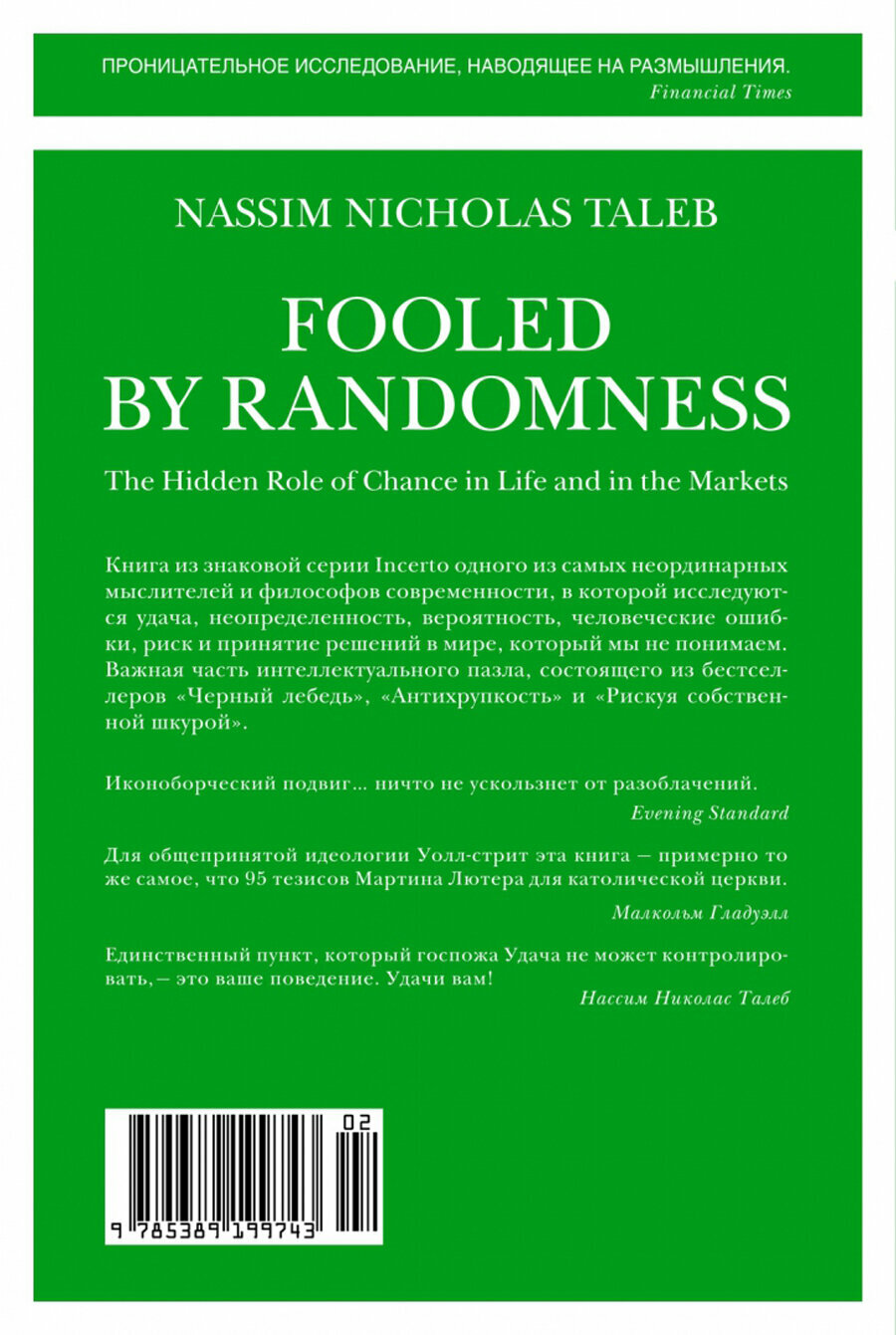 Случайность, удача, шанс, неопределенность, вероятность, человеческие ошибки, риск и принятие решений в мире, который мы не понимаем, - неисчерпаемые в своей многогранности темы, которые исследует успешный трейдер, математик и философ Нассим Талеб, подготавливая нас к достойной встрече лицом к лицу с вызовами и непредвиденными событиями любого рода.