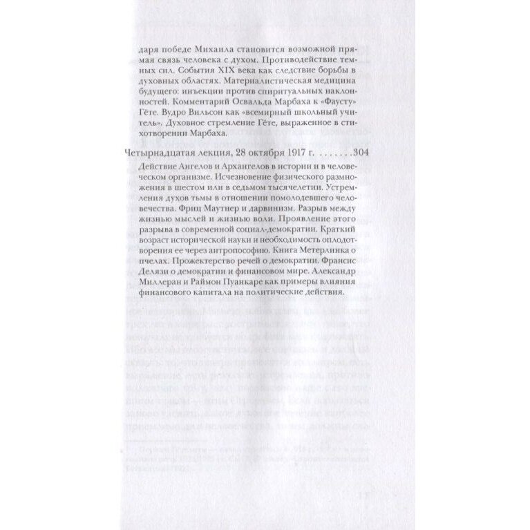 Целью данного курса лекций было показать, как события, происходящие в духовных мирах, влияют на все сферы жизни людей, включая индивидуальное здоровье человека. В результате битвы Архангела Михаила с Ариманом в XIX веке был очищен духовный мир, а демонический сонм был низвергнут в мир людей. На конкретных примерах из культурной, социальной и политической жизни (рассматриваются также события в России 1917 года) Р.Штайнер показывает, как демонические существа вносят разрушение, хаос и неприятие истины в душевный мир человека. Подпавшие их влиянию люди в частности утрачивают способность увязывать факты в единую картину, а массы людей обретают склонность к националистическим проявлениям. Возможность противодействия опасным разрушительным тенденциям автор видит в преодолении материалистического характера мышления, правильном воспитании детей и доведении событий в духовных мирах до сознания людей.