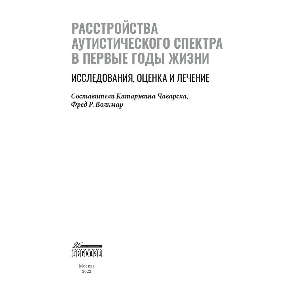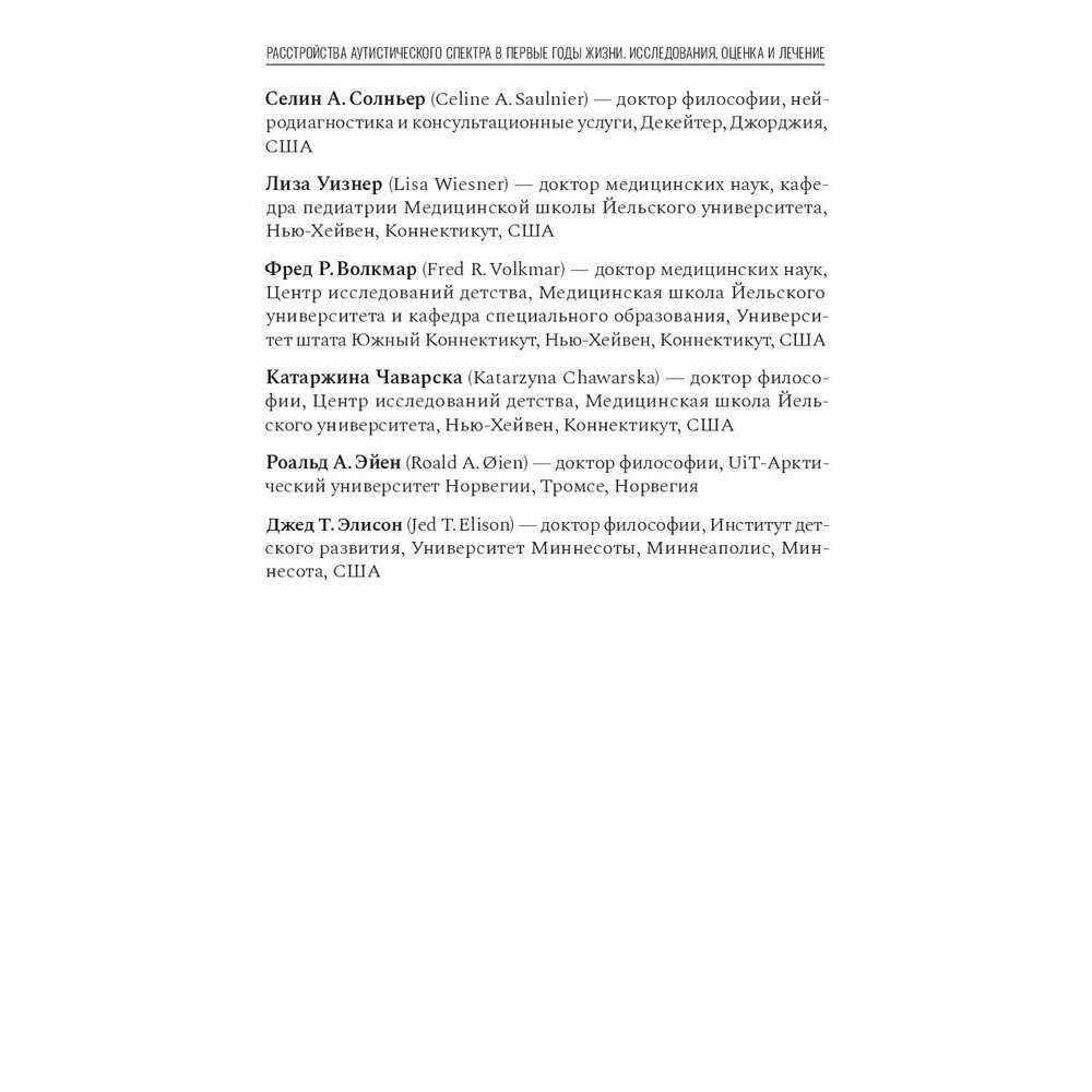 В книге обсуждаются ранние основные симптомы и сопутствующие характеристики РАС, лучшие диагностические инструменты и уроки, извлеченные из крупномасштабного скрининга и эпиднадзора, включая исследования братьев и сестер.