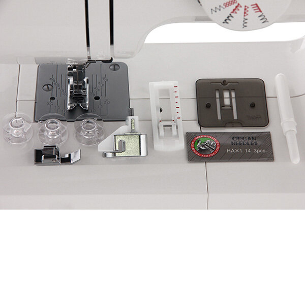 | Комплект поставки | лапка стандартная; лапка для вшивания молний; лапка для подрубки; шпульки - 4 шт; иглы; вспарываетесь; штопальная пластина; стержень для катушки |