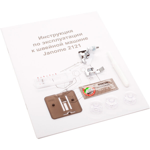 | Дополнительная комплектация | комплект игл, нож-вспарыватель, шпулька, пластина для штопки и вышивки |