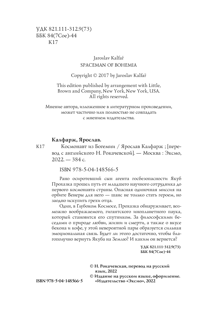 Книга: Космонавт из Богемии (Ярослав Калфарж); Эксмо, Редакция 1, 2022