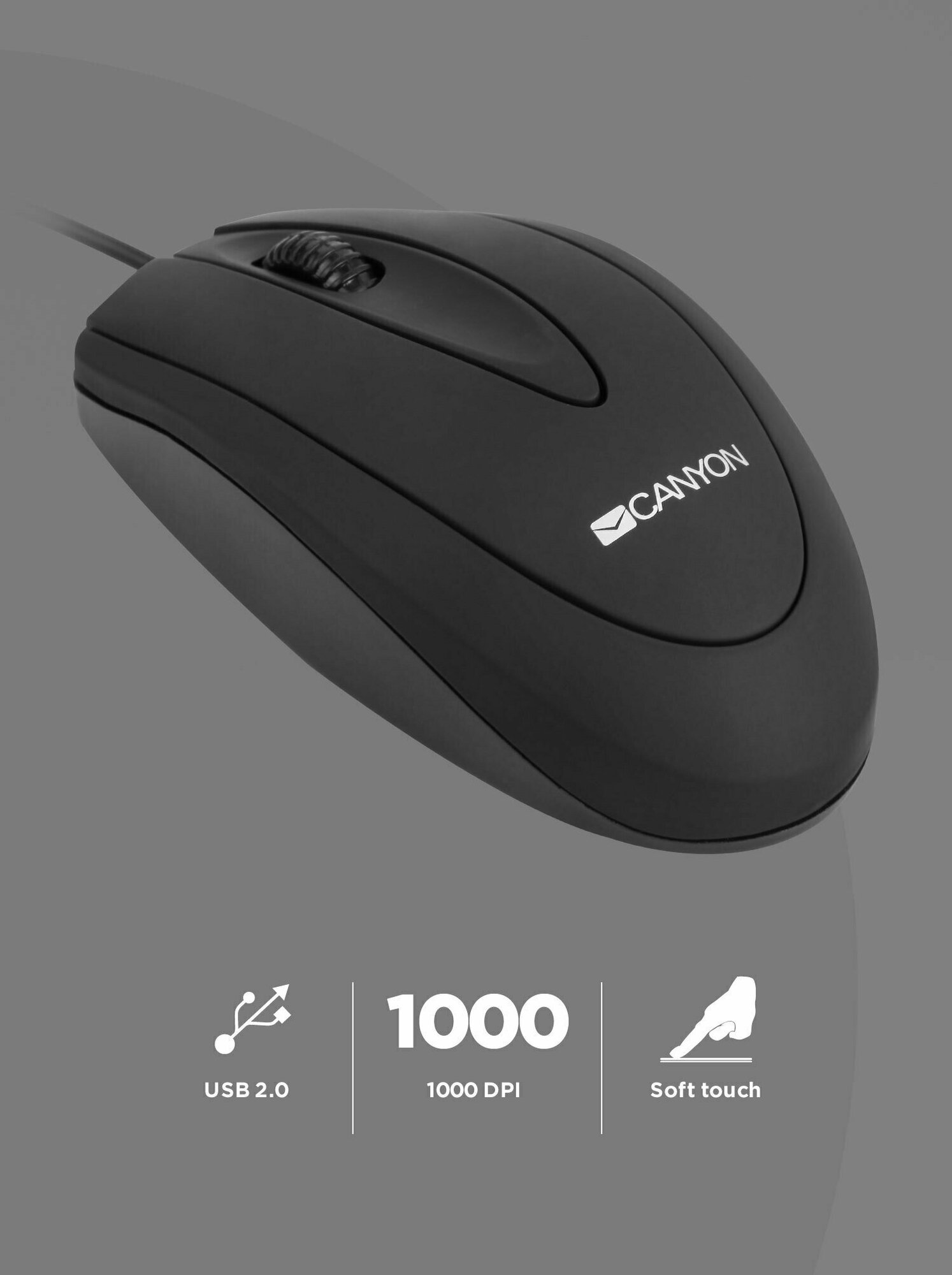 Классический дизайн и удобство в использовании – все это о мышке Canyon модели . Эта модель отличается мягким на ощупь покрытием и надежным кабелем с USB 2.0. Мышь поддерживает разрешение 800 точек на дюйм, что обеспечивает высокую точность движений.