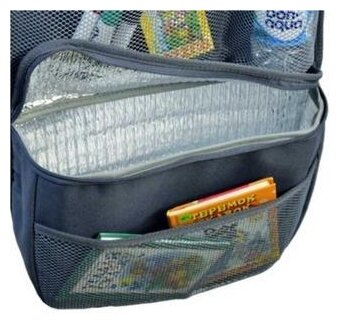 Функциональный и практичный органайзер" Comfort Address" выполнен из прочной ткани. Крепится органайзер на спинку переднего сидения с помощью петли на " липучке" и резинки. Органайзер имеет одно отделение и три сетчатых кармана, которые позволят вам компактно разместить все необходимые вещи. Вместительное нижнее отделение удерживает холод или тепло. Всегда приятно в дороге съесть горячий бутерброд или выпить холодной воды. Производители провели эксперимент по холодоудержанию (все это происходило при комнатной температуре). Положили литровую бутылку с замороженной водой, через два часа появилась вода, а через пять часов воды было примерно четверть. Семь часов спустя в бутылки было половина воды и половина льда. Материал: непромокаемая ткань ПВХ 600D. Размер (Ш х В): 35 см х 55 см. Размер термоотделения (Д х Ш х В): 8 см х 33 см х 25 см. Цвет: черный. Произведено в России. Артикул bag 029.