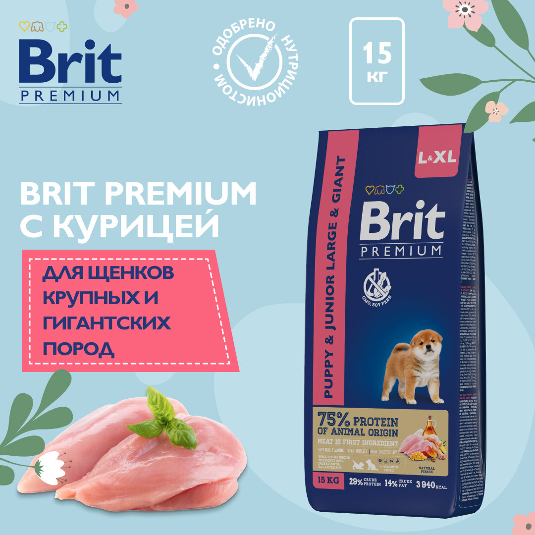 Сухой корм для собак Brit Premium Dog Puppy and Junior Large and Giant с курицей 15кг Maxi