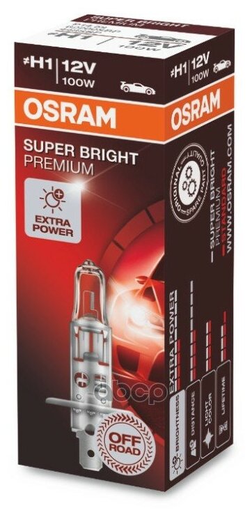 Название: Лампа H1 12v 100w P14.5s Osram Off-Road Super Bright Premium.Преимущества:- Повышенная мощность лампы - 100 Вт.- Цветовая температура 3200 К.- Галогенная лампа.- Цоколь P14,5s.- Напряжение 12В.Применение:Лампа H1 предназначена для использования в автомобильных фарах и других осветительных приборах. Она обеспечивает яркий и мощный свет для безопасного движения в темное время суток.Способ применения:Установите лампу в фару или другой осветительный прибор. Убедитесь, что лампа соответствует типу и цоколю вашего устройства.Характеристики:Галогенная лампа повышенной мощности. Цветовая температура 3200К. Мощность 100Вт. Цоколь P14,5s. Напряжение 12В
