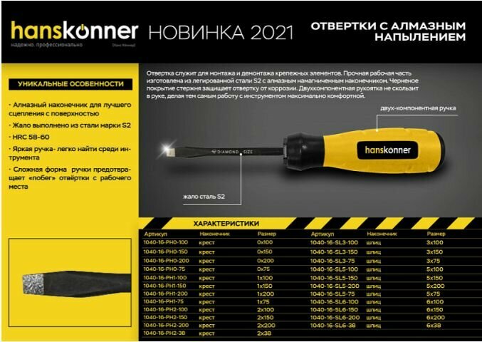 Сервис сравнения цен СкидкаГИД предлагает сравнить цены на товар «Отвертка Hanskonner HK1040-16-PH0-75»
