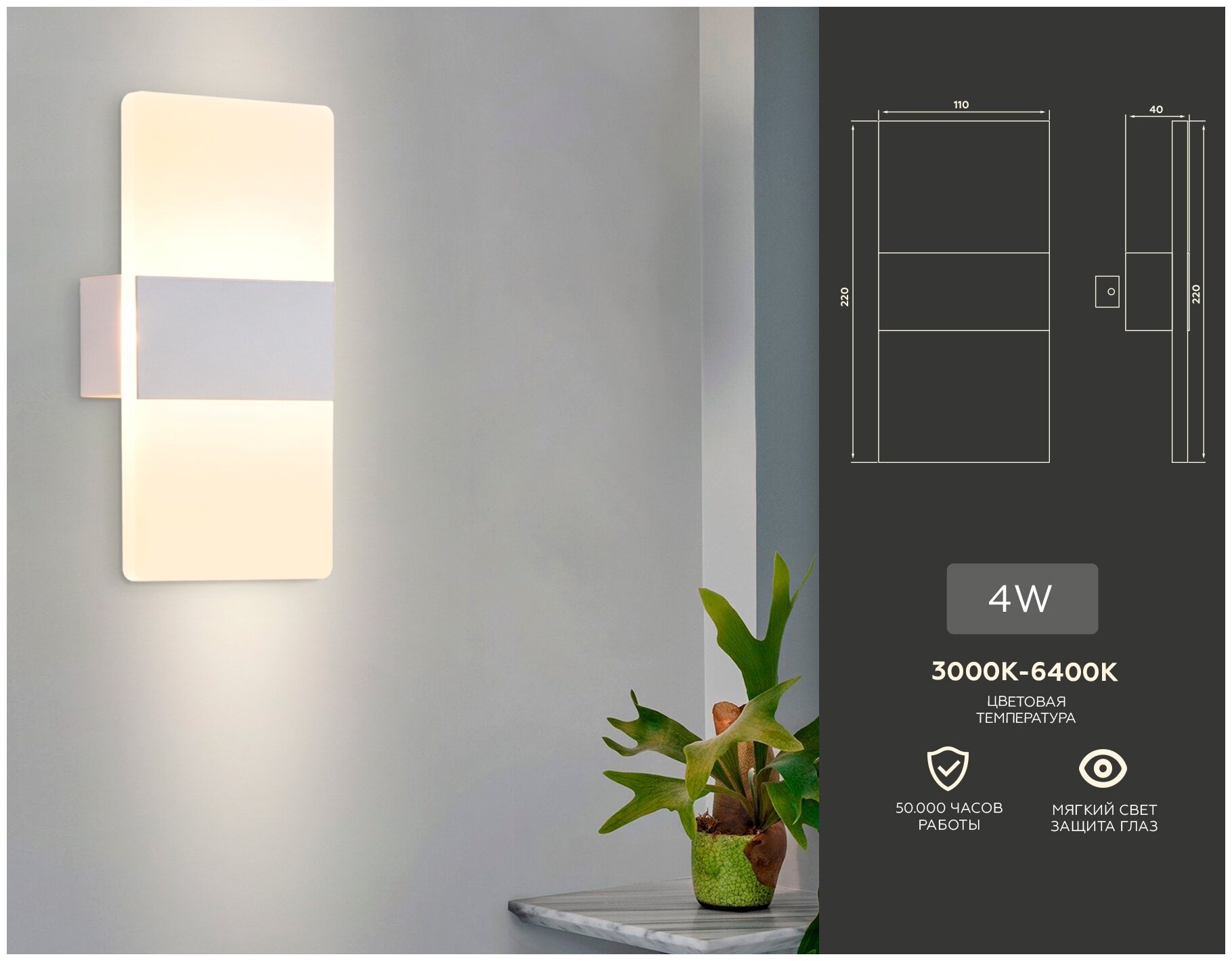 Настенный светодиодный светильник. Модель представлена в современном стиле техно. Светильник выполнен в белом цвете, изготовлен из акрила и металла. Эта модель оснащена встроенными светодиодами, благодаря чему вы забудете о замене дополнительных ламп. Эта модель будет прекрасным дополнением в гостиной, спальне или детской комнате.