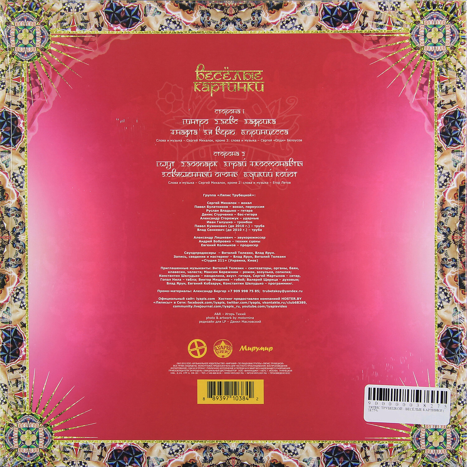 Содержание: Сторона A: 1. Intro 2. Зевс 3. Африка 4. Нафта 5. Я верю 6. Принцесса Сторона B: 1. Шут 2. Зоопарк 3. Грай 4. Священный огонь 5. Космонавты 6. Дикий койот Виниловая пластинка Ляпис Трубецкой - Веселые Картинки (180 Gram LP) - одиннадцатый студийный альбом белорусской рок-группы «Ляпис Трубецкой», изначально выпущенный в 2011 году и переизданный 2021 году на виниловой пластинке.Ляпис Трубецкой - Советская и белорусская панк-рок-группа, названная в честь комического героя романа Ильи Ильфа и Евгения Петрова «Двенадцать стульев», поэта-халтурщика Никифора Ляписа, который печатался под псевдонимом Трубецкой.