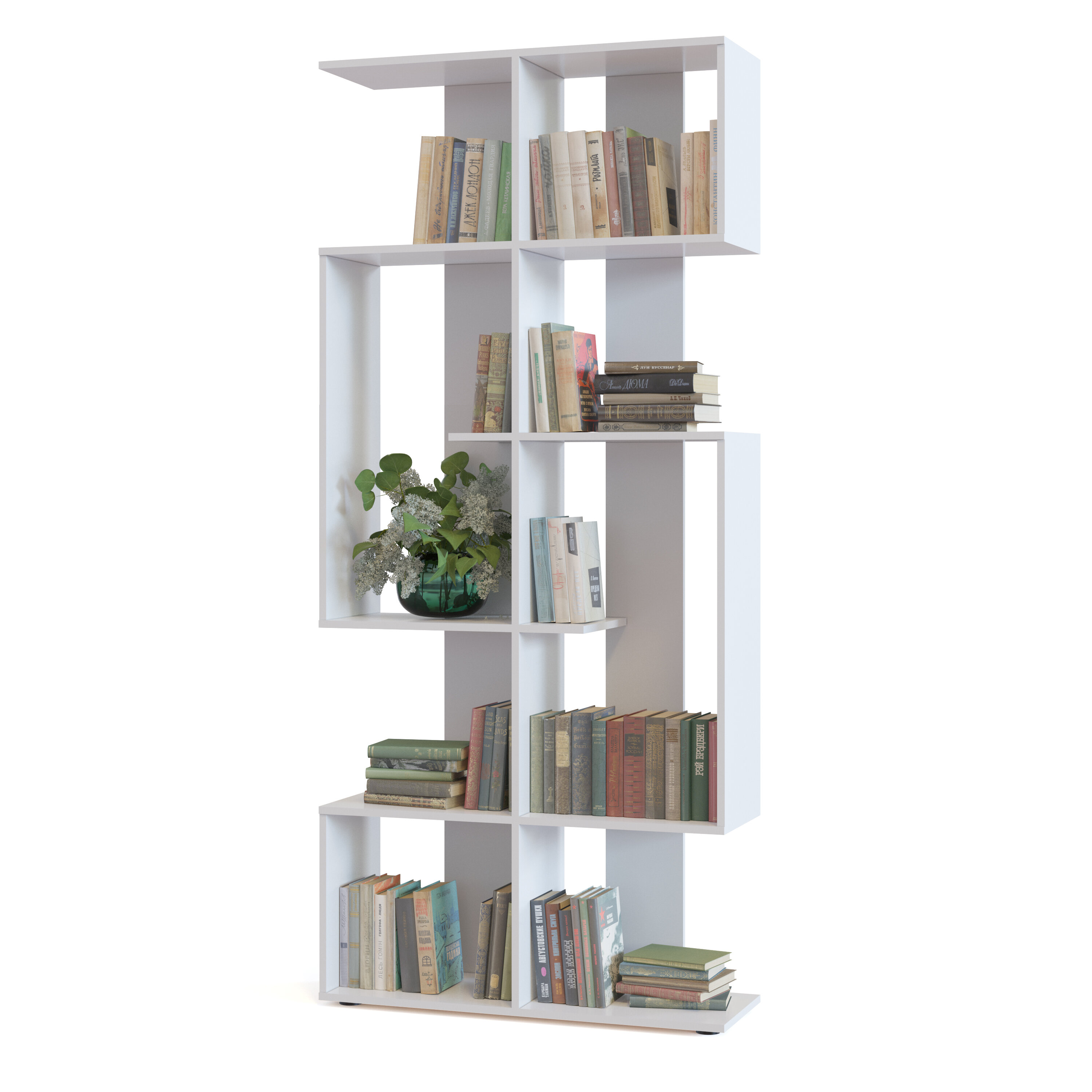Габаритные размеры ВхШхГ 2035x900x312 мм. Необычная геометрия такого стеллажа, как будто выходящая за грани рамок, привлечет внимание любителей нетривиальных решений в дизайне помещения. Модель будет гармоничным дополнением интерьера в спальне, гостиной или даже в детской комнате. Большое количество полочек разной высоты и размеров позволяют расставить книги, предметы интерьера, любимые фотографии и прочие мелочи.