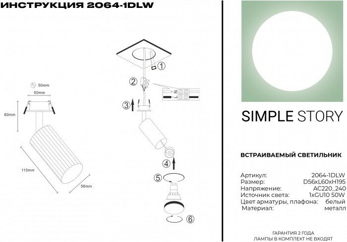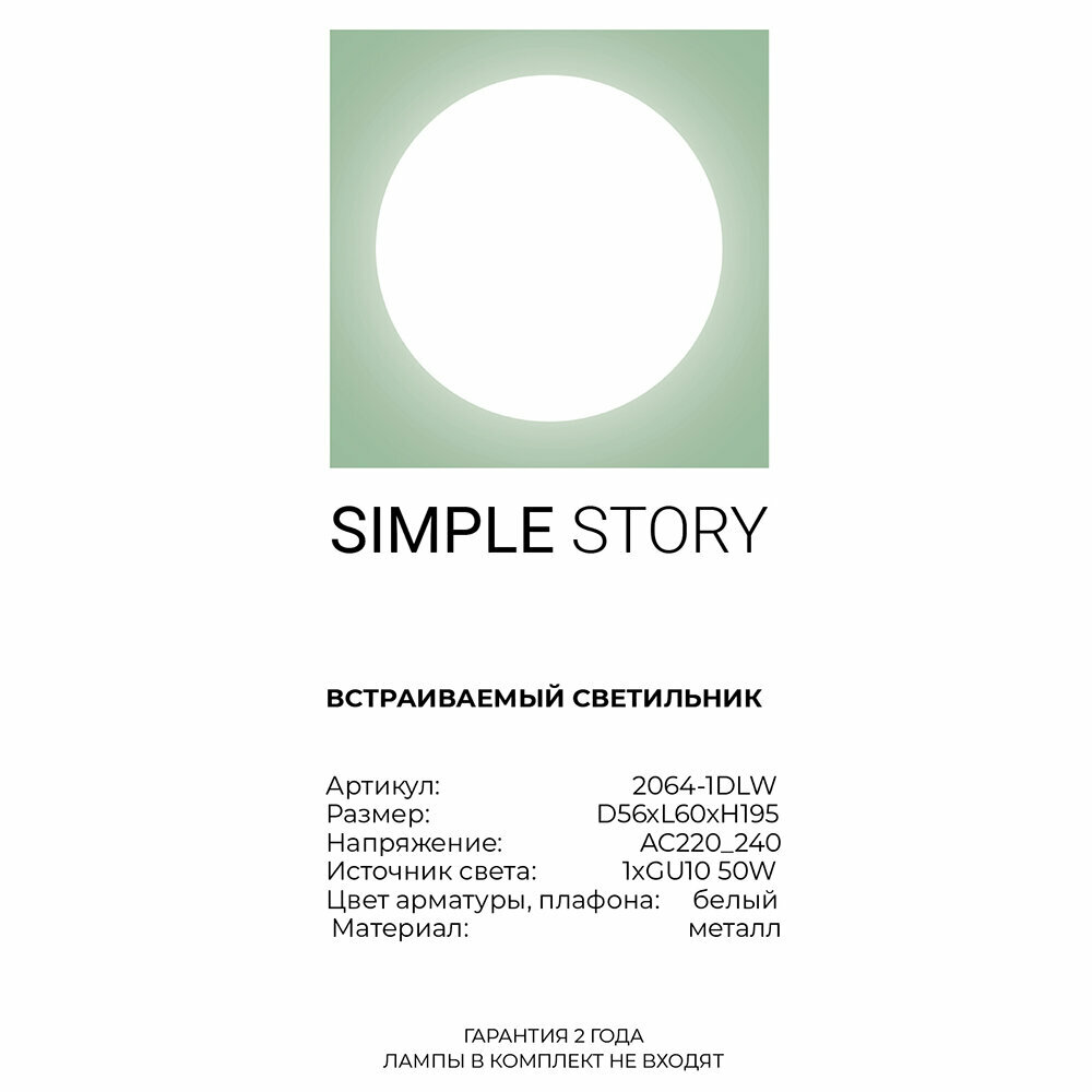 Встраиваемый светильник 2064-1DLW - продукт известной компании Simple Story (Россия). Имеет максимальную мощность 50 Вт, освещает площадь до 4 кв. м. Отлично подойдет для таких мест, как гостиная, кабинет, кухня, офис. Впишется в интерьеры следующих стилей: модерн.