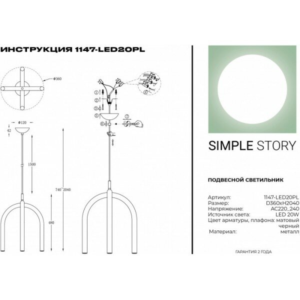 Подвесной светильник светодиодный 1147-LED20PL - продукт известной компании Simple Story (Россия). Имеет максимальную мощность 20 Вт, освещает площадь до 4 кв. м. Отлично подойдет для таких мест, как гостиная, спальня, кухня, офис. Впишется в интерьеры следующих стилей: модерн.