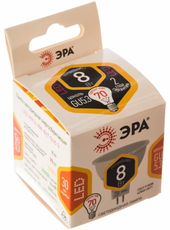 ЭРА Лампа светодиодная софит GU5,3 170-265В 8Вт 2700К Светодиодная лампа - это современная альтернатива традиционной лампы накаливания. От обычной энергосберегающей лампы лампу этого типа отличает отсутствие ртути, что повышает ее экологическую безопасность и облегчает процедуру утилизации. Выгорание обивки мебели, краски и прочего не происходит за счет того, что светодиодная лампа не дает УФ-излучения, а высокая устойчивость к ударам позволяет использовать ее даже для уличного освещения.