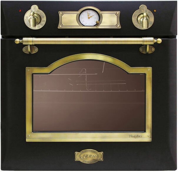 Многофункциональный духовой шкаф из коллекции Empire c бронзовыми переключателями подчеркнет интерьер кухни. Телескопические направляющие придают дополнительный комфорт при извлечении противней. Таймер поможет настроить время приготовления. В поворотные регуляторы встроен автоматический электроподжиг. Тройное стекло не допускает нагрева дверцы во время работы духовки.