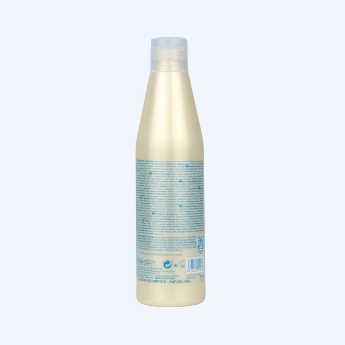 1. Перед использованием средства вымыйте волосы Шампунем Salerm 21 Shampoo.