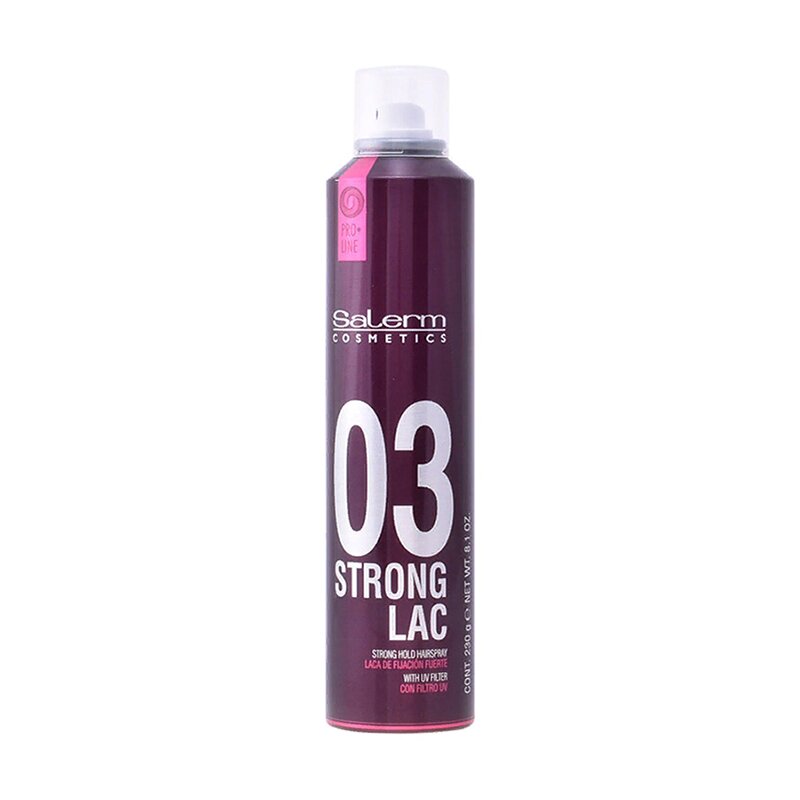 Лак для волос Salerm Pro Line Strong Lac сильной фиксации с УФ-фильтром, быстросохнущий, для работы в любом положении. С водоотталкивающим эффектом и компонентами для сохранения цвета волос. Антиоксидантные свойства обеспечиваются экстрактом стволовых клеток хлопка.