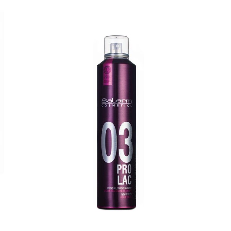 Salerm Pro Line Pro Lac - это лак сильной фиксации без газа. Он имеет антиоксидантные свойства и содержит уф-фильтр. Pro Lac содержит экстракт стволовых клеток хлопка, которые защищают волосы и кожу головы от вредного воздействия окружающей среды. Pro Lac фиксирует укладку, обладает водоотталкивающим эффектом и компонентами для сохранения цвета. Объем 300 мл.