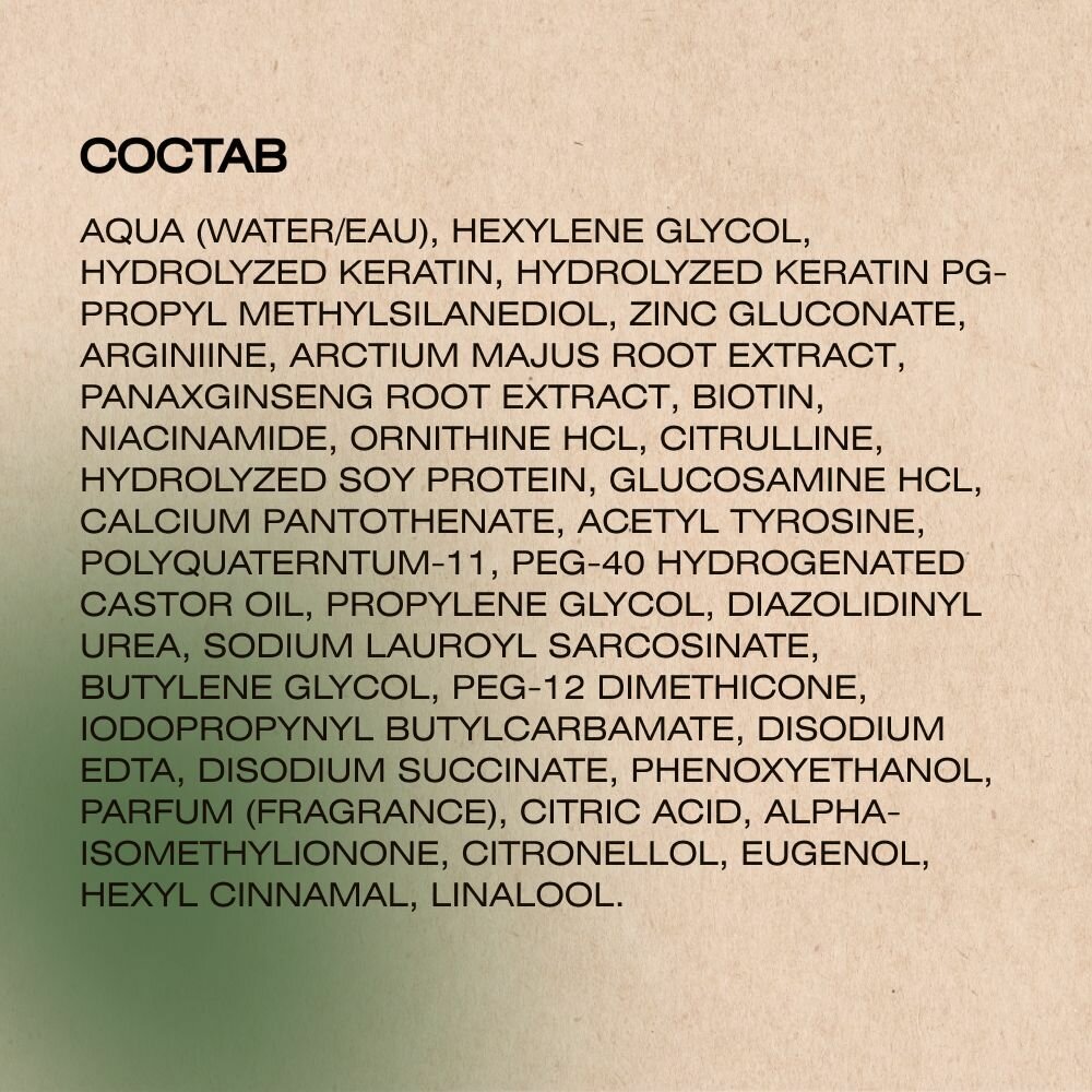 | Состав | экстракты женьшеня, гинкго билоба, полимеры, витамины, косметическая основа |