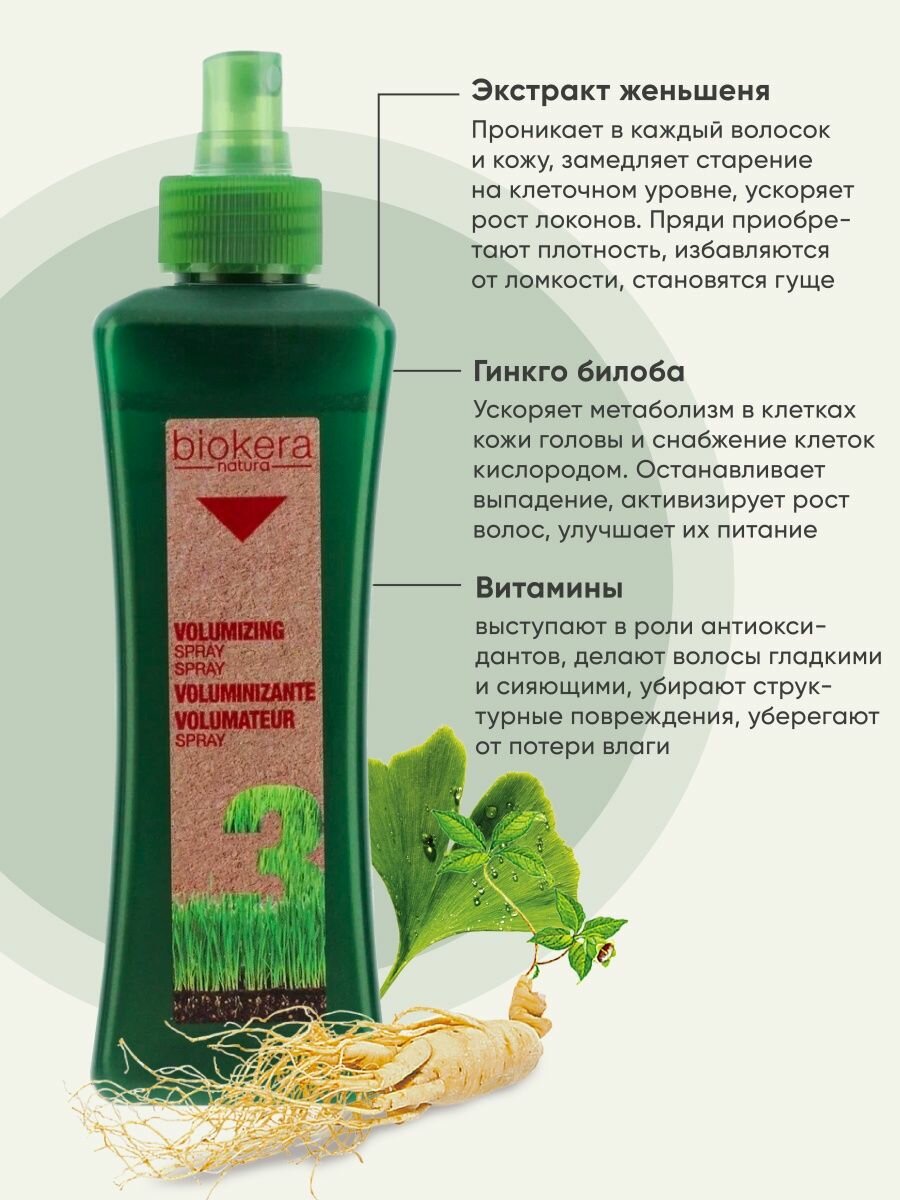 Средство Salerm Biokera Volumizing Spray в основу которого вошел экстракт женьшеня, идеально подойдет для ежедневного ухода за тонкими, безжизненными и слабыми волосами. Отлично уплотняет и приподнимает волосы, создавая живой объем.