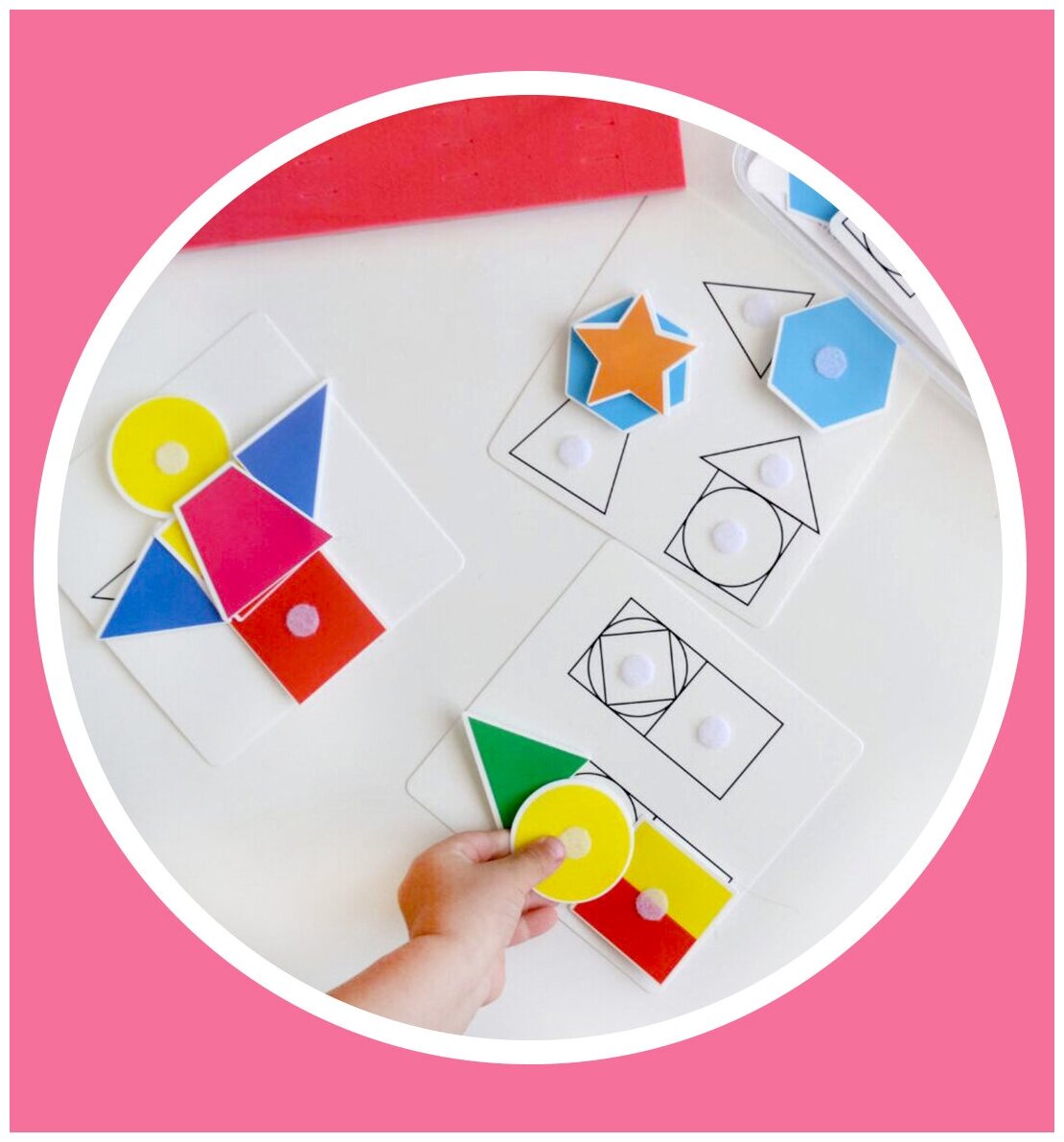 Пожалуй это одна из самых интересных геометрических развивающих игр. В этой игре 2 этапа. Для детей помладше подойдет вариант с использованием фигур на плоскости. Малыши по ярким карточкам образцам будут заполнять игровые поля по принципу мозайки. Второй этап будет очень интересен старшим исследователям. Ребенок составляет сложные геометрические фигуры совмещая простые.