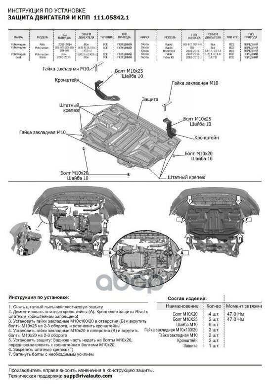 | Комплектация | защита - 1 шт., комплект крепежа, инструкция по установке, упаковка |