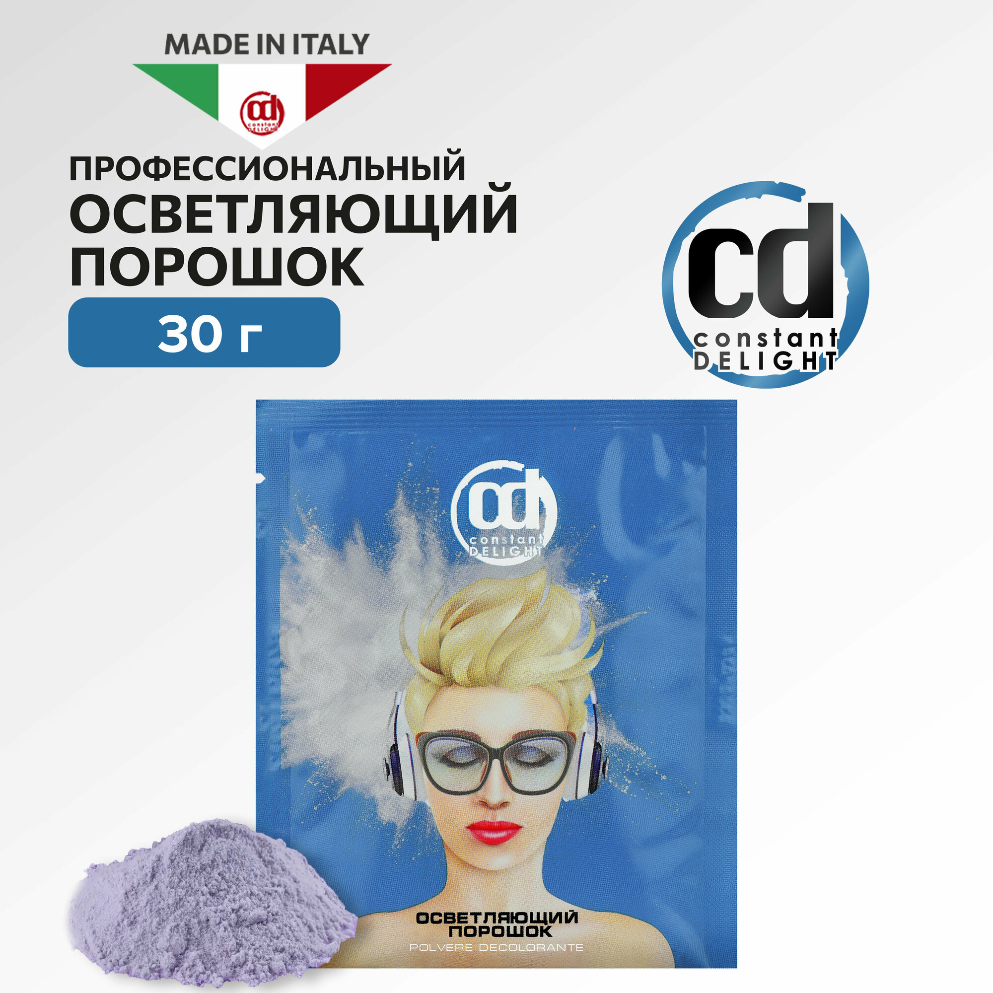 Constant Delight T - Осветляющий порошок. Порошок позволяет осветлять волосы на 6-7 тонов, содержит натуральные ингредиенты, в том числе кукурузное масло, предотвращающее повреждение волос. Также в его состав входит голубой пигмент,исключающий появление желтизны.
