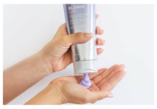 Холодным и платиновым блондинкам теперь еще легче будет сохранить сияющий оттенок без всякого намека на теплоту. Нейтрализующий и тонирующий кондиционер Blonde Life Violet Conditioner с фиолетовыми микропигментами мгновенно нейтрализуют желтизну и оранжевый подтон, делают блонд ярким, питают и защищают - и помогают хрупким осветленным волосам сохранить исключительно здоровый вид.