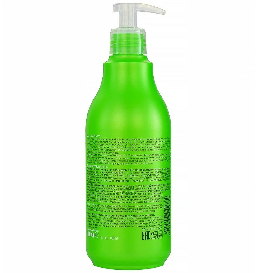 Заключительный 3-й этап процедуры восстановления и ламинирования волос. Гель обладает сильным кондиционирующим эффектом, разглаживает внешнюю часть волос, закрывает кутикулу волоса и обволакивает тончайшей пленкой. Придает волосам здоровый и сияющий вид. Защищает их структуру от повреждений при расчесывании, препятствует ломкости, спутыванию и сечению. Результат - роскошные, здоровые и блестящие волосы! СПОСОБ ПРИМЕНЕНИЯ: Выполнив Шаг 1 и Шаг 2 процедуры восстановления и ламинирования волос, нанести Ламинирующий гель на влажные волосы с помощью кисти и равномерно распределить по полотну волос. ВНИМАНИЕ! В отличие от Шага 1 и Шага 2 средство Шаг 3 не смывается с волос. После нанесения Шага 3 можно приступить к укладке волос при помощи брашинга и фена. После укладки, для максимального продления результата процедуры "био-ламинирования", на кончики волос можно нанести "Капельки шелка".