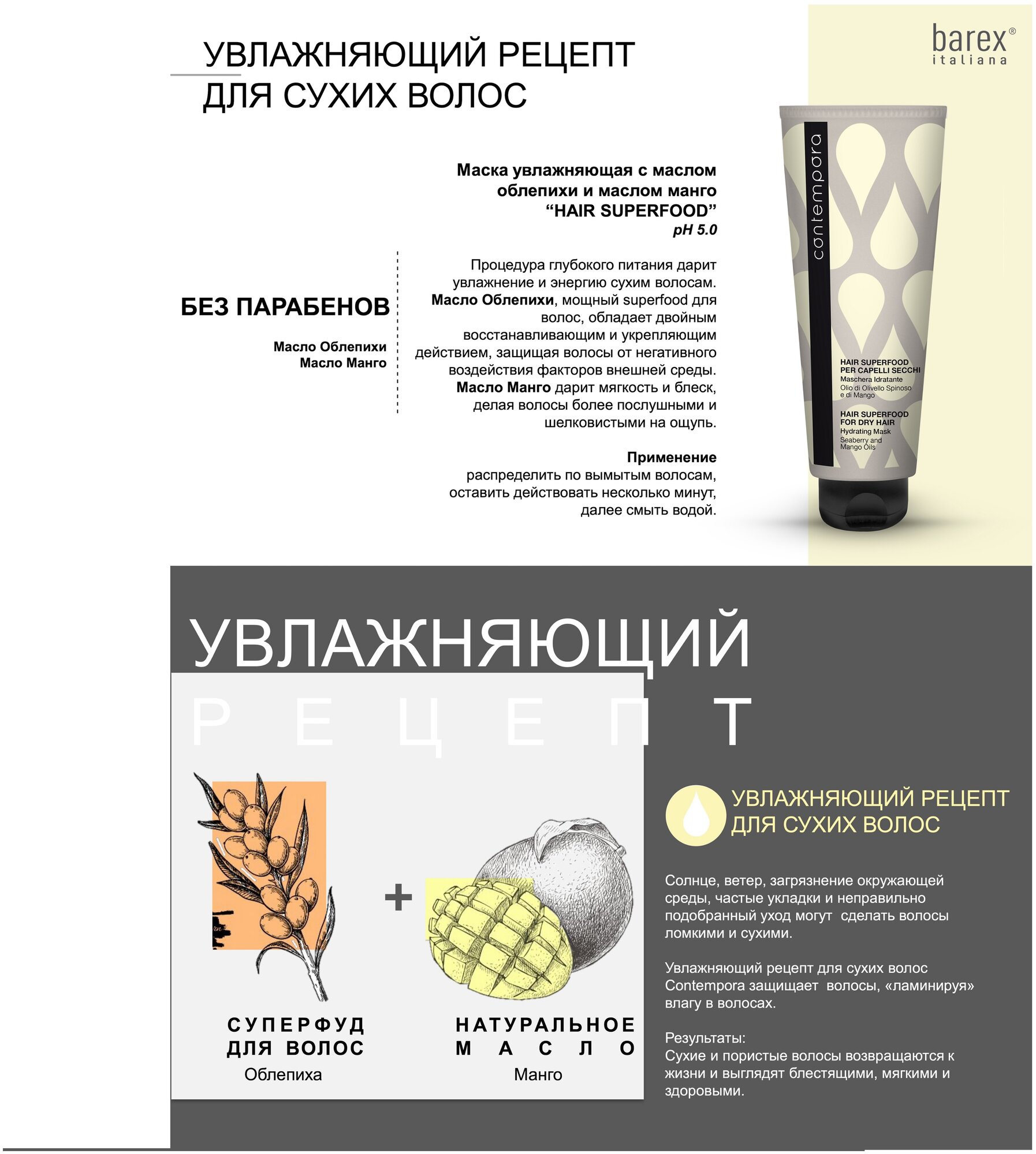 Маска увлажняющая Сухие волосы Hair Superfood Barex (9000105HS)