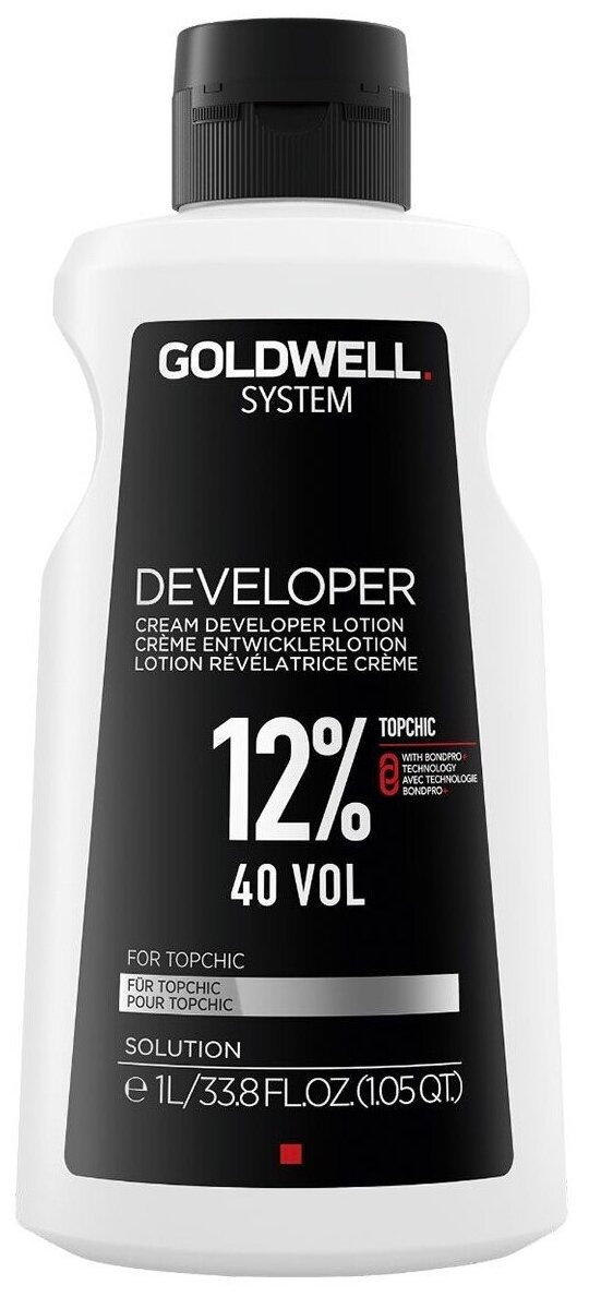 Выбор лосьона Topchic зависит от индивидуально составленной формулы и разницы между уровнями имеющегося и желаемого оттенков. Кремообразная консистенция обеспечивает идеальное нанесение и равномерное распределение краски на волосах. Благодаря своей форме бутыль удобно лежит в руке, позволяет оптимально дозировать лосьон, а также идеально подходит для системы дозирования Depot Can System.