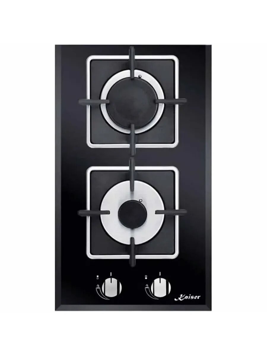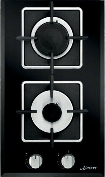 Варочная панель Kaiser на все случаи жизни Компактная двухконфорочная варочная панель Kaiser подключается к газу и управляется механическими поворотными переключателями-рычагами. Эта модель с использованием дизайна «Домино» отлично подойдет для небольшой кухни, пригодится на даче и поможет обслужить семью из двух человек. Скошенная рамка, металлические переключатели уровня пламени, логотип компании на стеклянной поверхности придают немецкой варочной панели особый шарм.