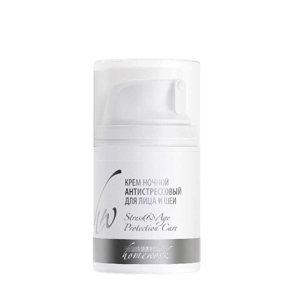 Крем ночной антистрессовый для лица Homework - Обратная эмульсия для борьбы с потерей эластичности, сетью морщин, сосудистыми изменениями, нарушениями пигментации кожи. Комплекс фруктовых кислот, растительных масел с высоким содержанием ненасыщенных жирных кислот и витаминов улучшает эластичность, тонус, цвет и водно-липидный барьер кожи. Показания к применению: сухость кожи, шелушение, снижение тургора и эластичности, сеть морщин. Улучшает функциональные показатели кожи: влажность, эластичность, тургор, профиль (уменьшает ширину и глубину морщин). Замедляет процесс увядания кожи. Восстанавливает эпидермальный барьер. Улучшает иммунный статус кожи.