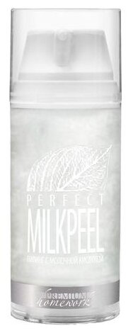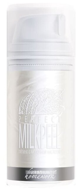 Пилинг с молочной кислотой для лица Homework PERFECT MILKPEEL - средство на базе молочной кислоты для применения в домашних условиях на этапе глубокого очищения. Содержащиеся в препарате протеины йогурта защищают от раздражения и способствуют улучшению иммунного статуса кожи. Эффективно удаляет ороговевшие клетки эпидермиса и продукты кожного метаболизма, нормализует процессы кератинизации и физической регенерации. Улучшает водно-липидный обмен. Универсальный препарат применяется для коррекции и профилактики гиперкератоза, себореи, возрастных и мимических изменений, гиперпигментации. Активные ингредиенты: молочная кислота, AHA-комплекс, йогурта протеины, натрия пирролидон карбоксилат. Способ применения: нанести тонким слоем на предварительно очищенную кожу на 3-5 минут, затем смыть прохладной водой. Протонизировать кожу.