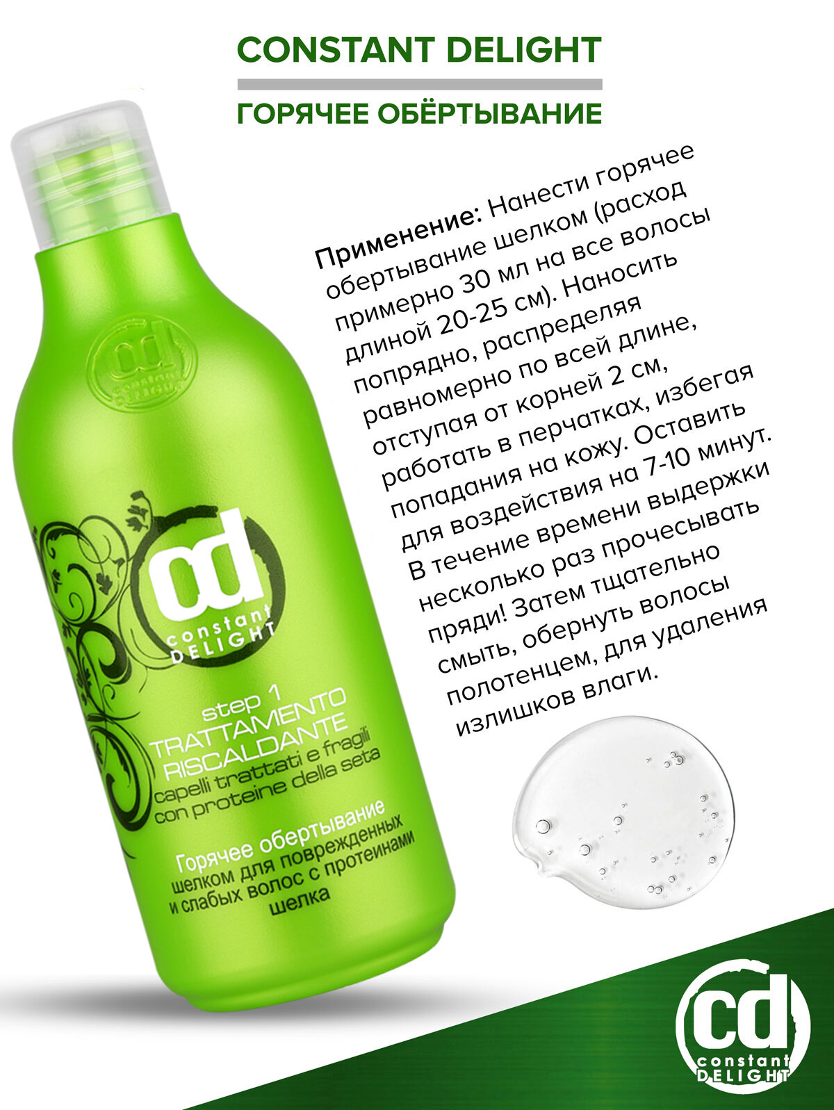 Горячее обертывание для поврежденных и слабых волос с протеинами шелка Constant Delight (КД19682)
