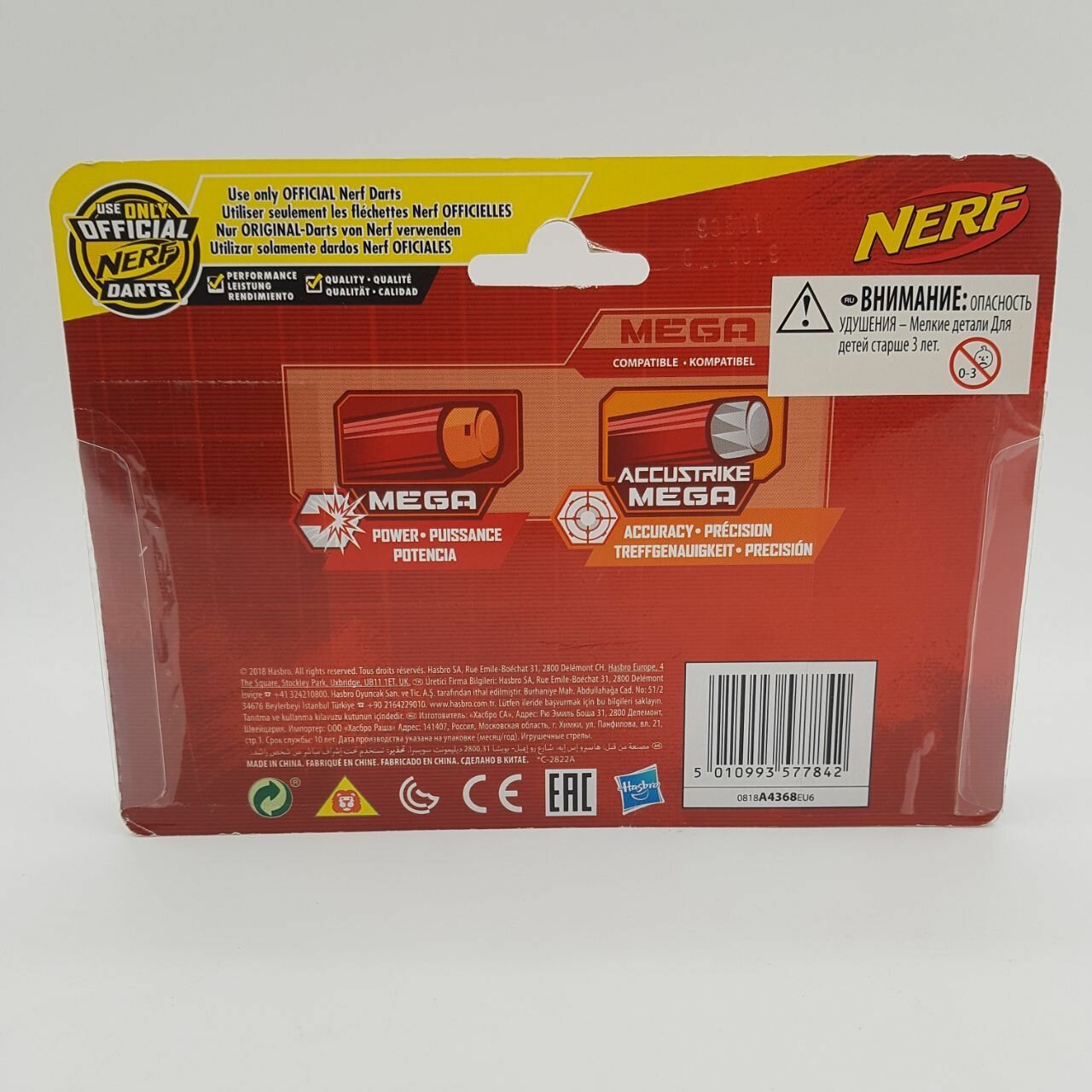 Снаряды Hasbro Nerf A4368 совместимы со всеми бластерами серии MEGA. Они изготовлены из мягких безопасных материалов. Для того чтобы полностью исключить травмы во время игры, не следует целиться в лицо и пытаться изменить форму снарядов.