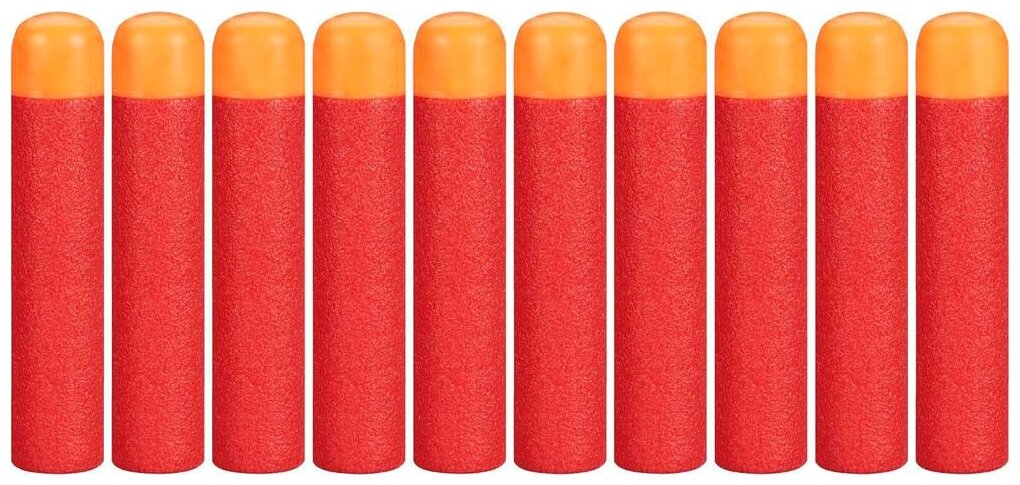 В сражении на бластерах важно беречь боеприпасы, ведь без них увлекательная игра быстро закончится. Но только не с Nerf. Производитель предусмотрительно подготовил отдельный комплект стрел к фирменному оружию бренда. Мега дротики имеют красно-оранжевый цвет, облегчающий их поиск на улице. Изделия изготовлены из вспененного мягкого полиэтилена, не травмирующего соперников при ударе. Для упругости и прочности в него добавляется силикон.