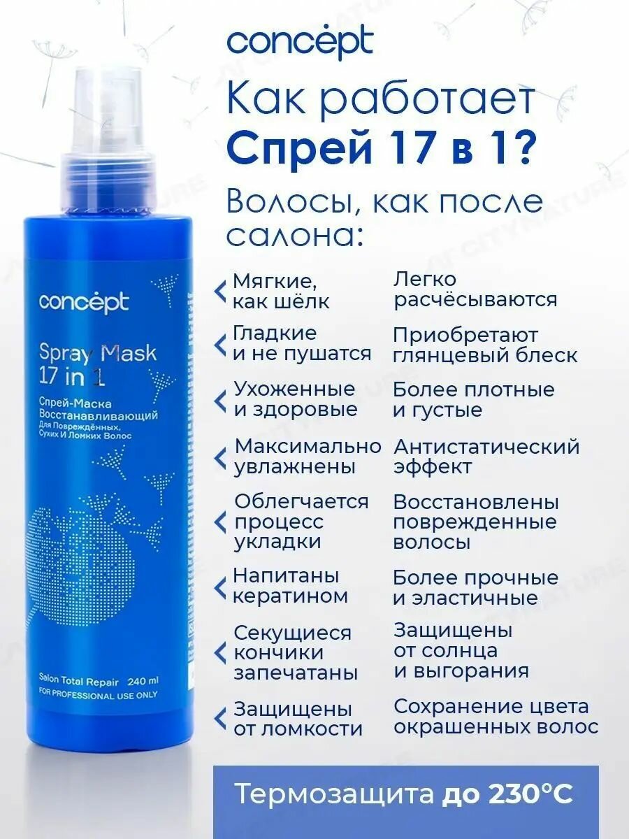 Сервис сравнения цен СкидкаГИД предлагает сравнить цены на товар «Спрей-маска 17 в 1 восстанавливающий для повреждённых сухих и ломких волос Spray Mask Concept (90639)»