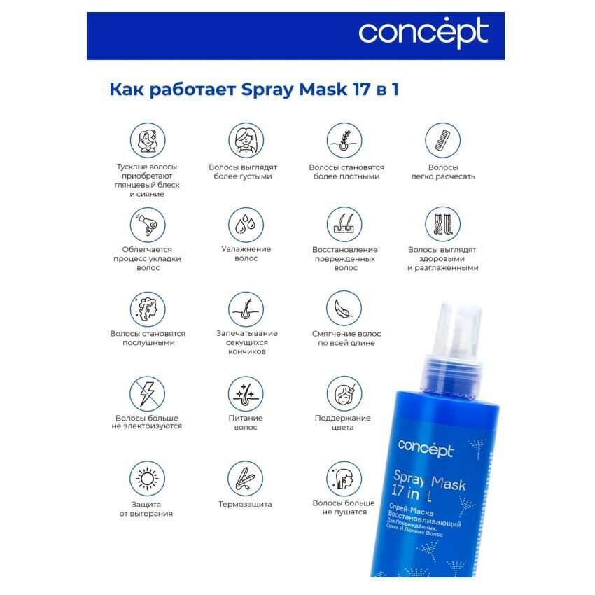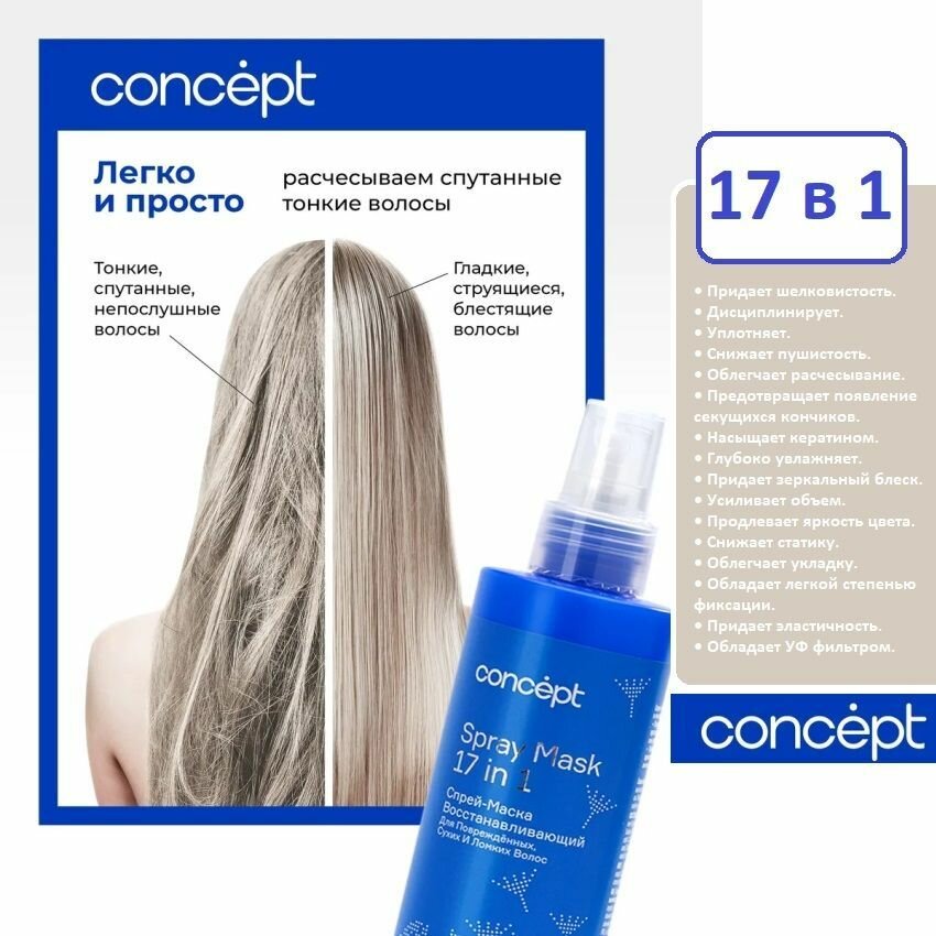 Спрей-маска 17 в 1 восстанавливающий для повреждённых сухих и ломких волос Spray Mask Concept (90639)
