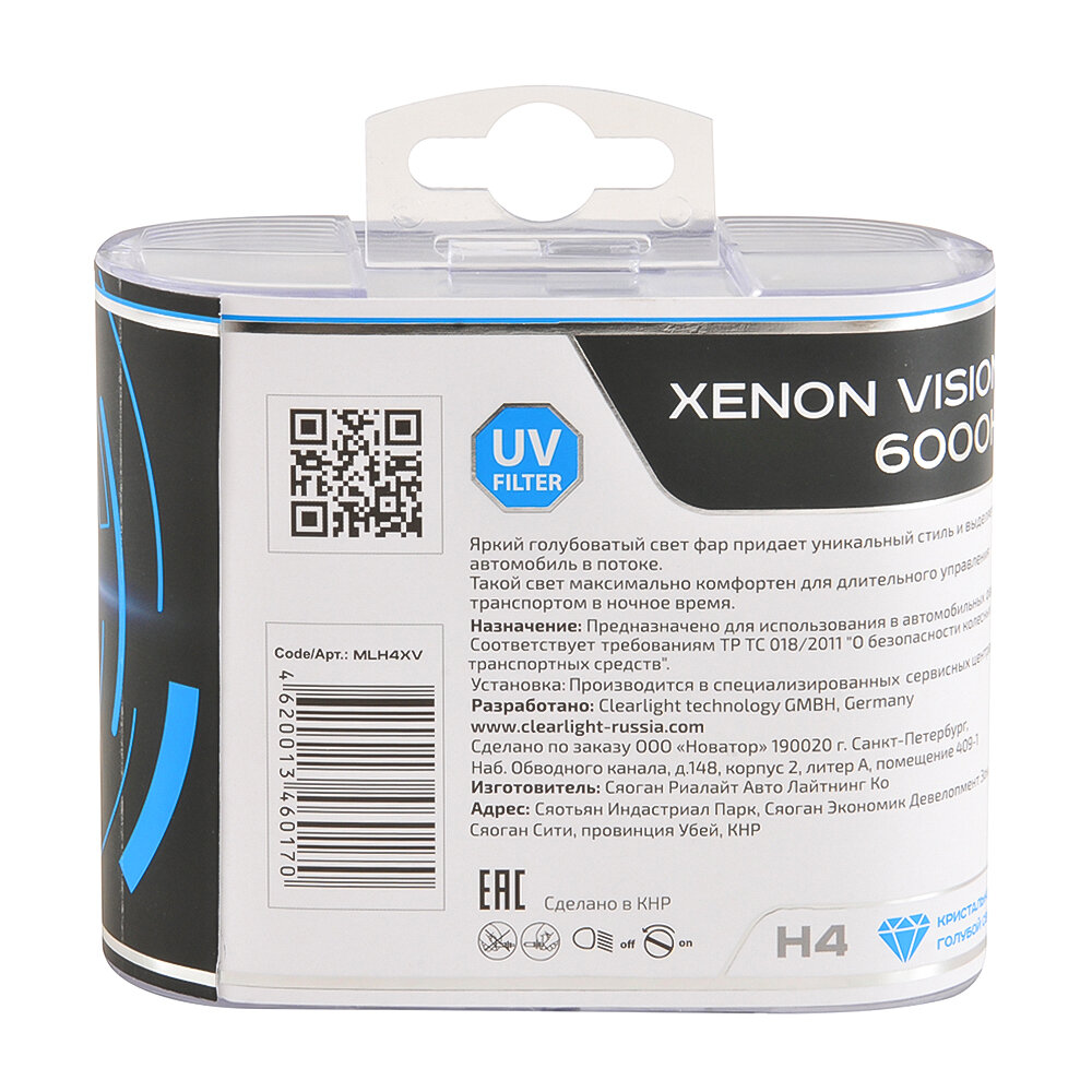 Лампа галогенная автомобильная с двумя осевыми нитями накала ClearLight H4 XenonVision. Лампа ClearLight имеет стабильное свечение и яркий свет. Прекрасно освещают дорогу в ночное время.
