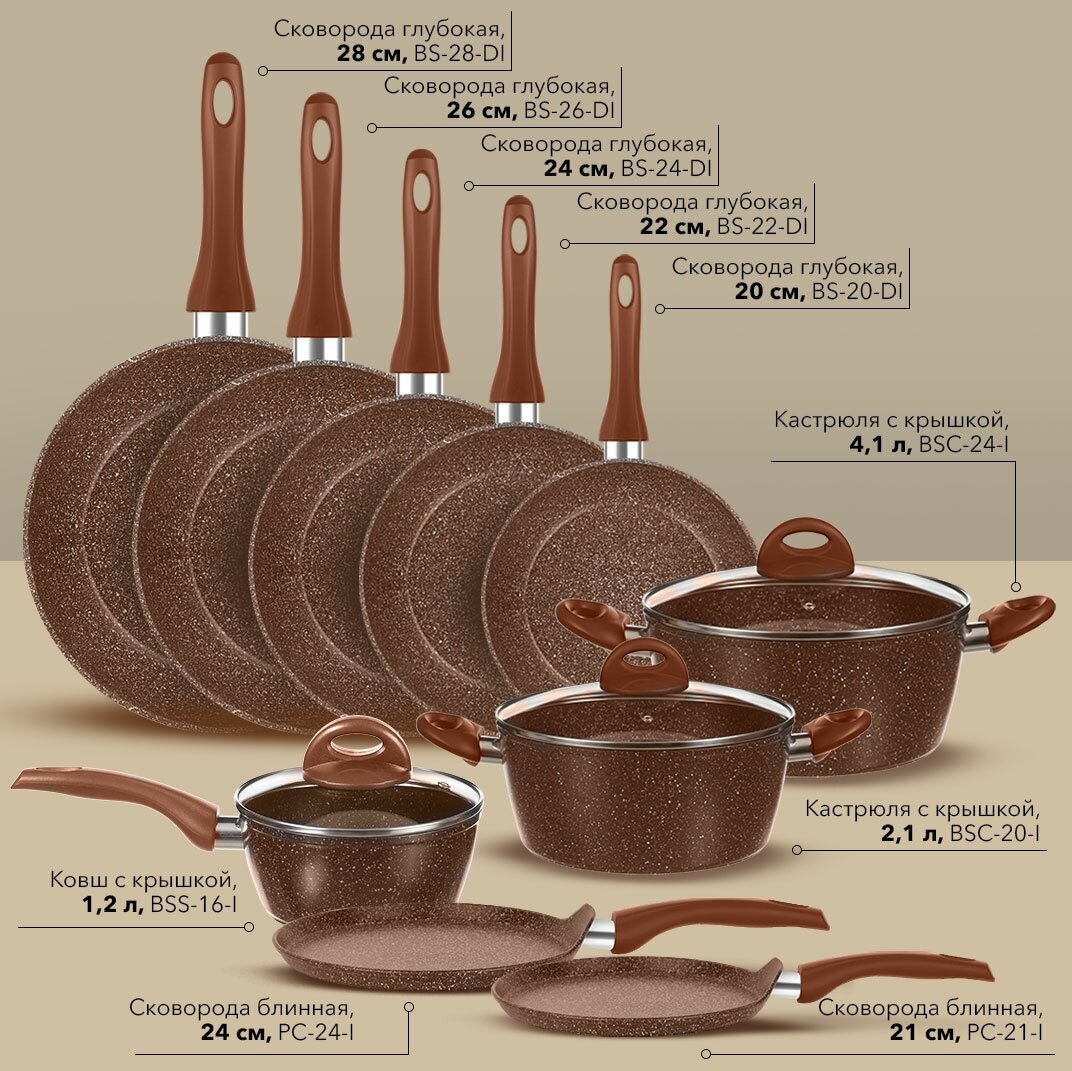 Сковороды и сотейники для кухни с ценой 392 р. - 588 р.